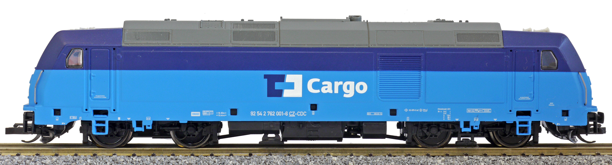 | dieselová lokomotiva v barevném schematu „ČD Cargo“ |