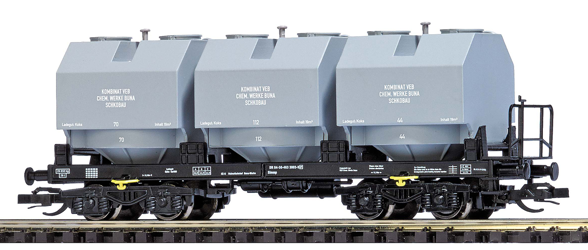 měřítko 1:120 - rozchod kolejí 12 mm kinematika krátkého spřáhla (KKK) podle normy NEM 358 100 mm - celková délka modelu přes nárazníky 4 - celkový počet náprav nebo rozložení náprav