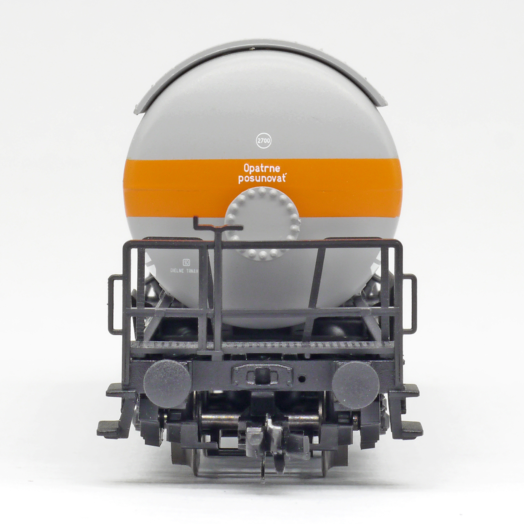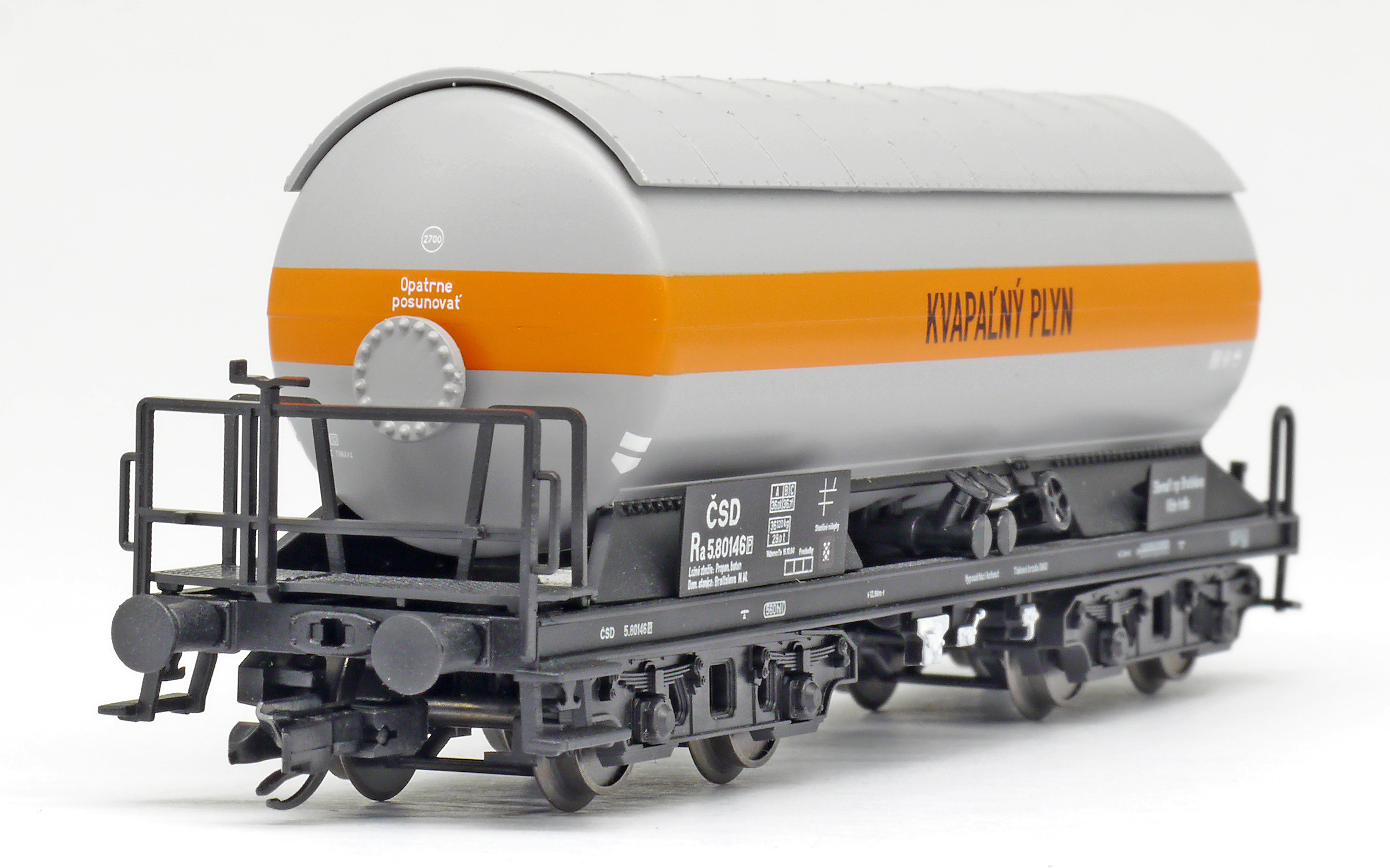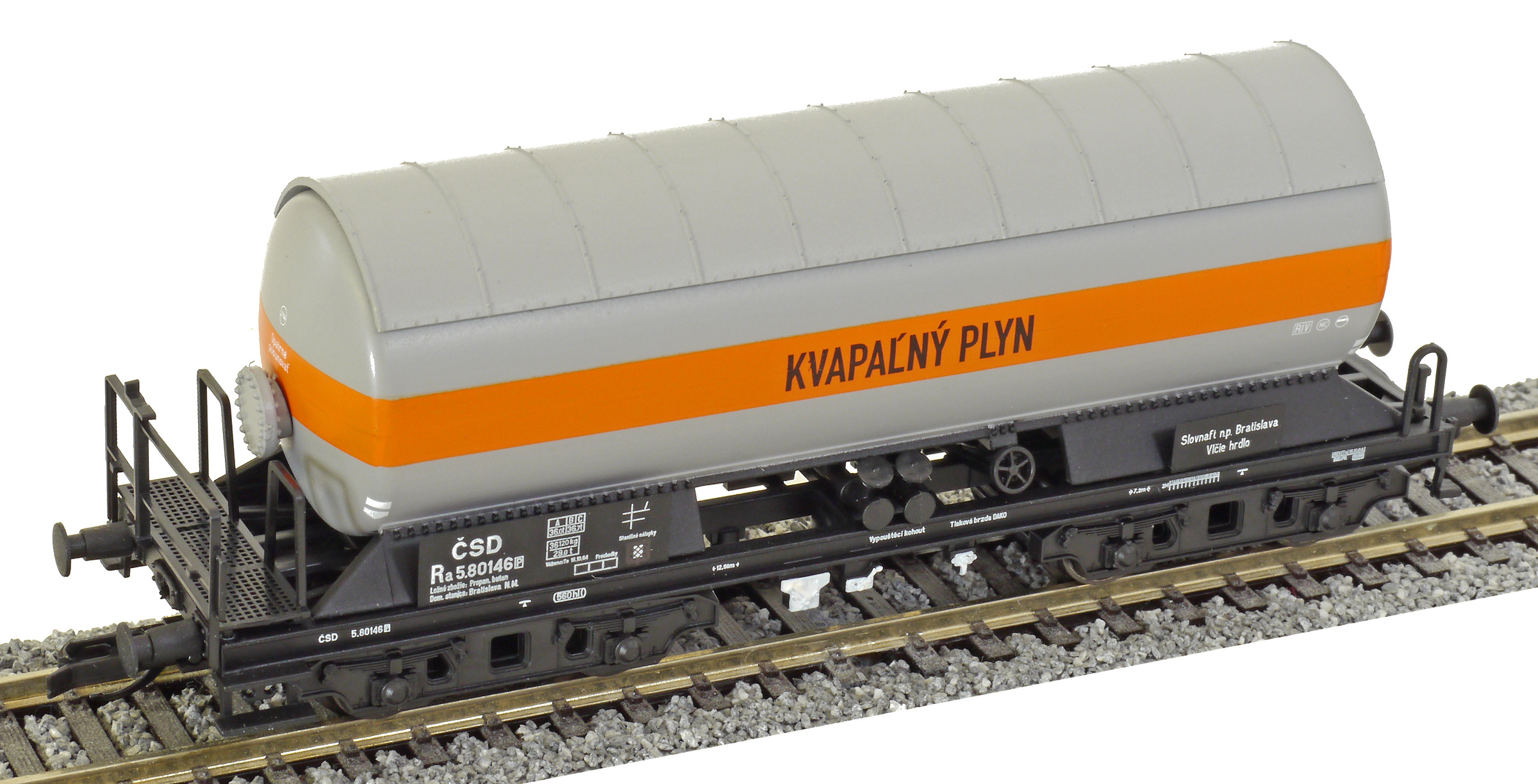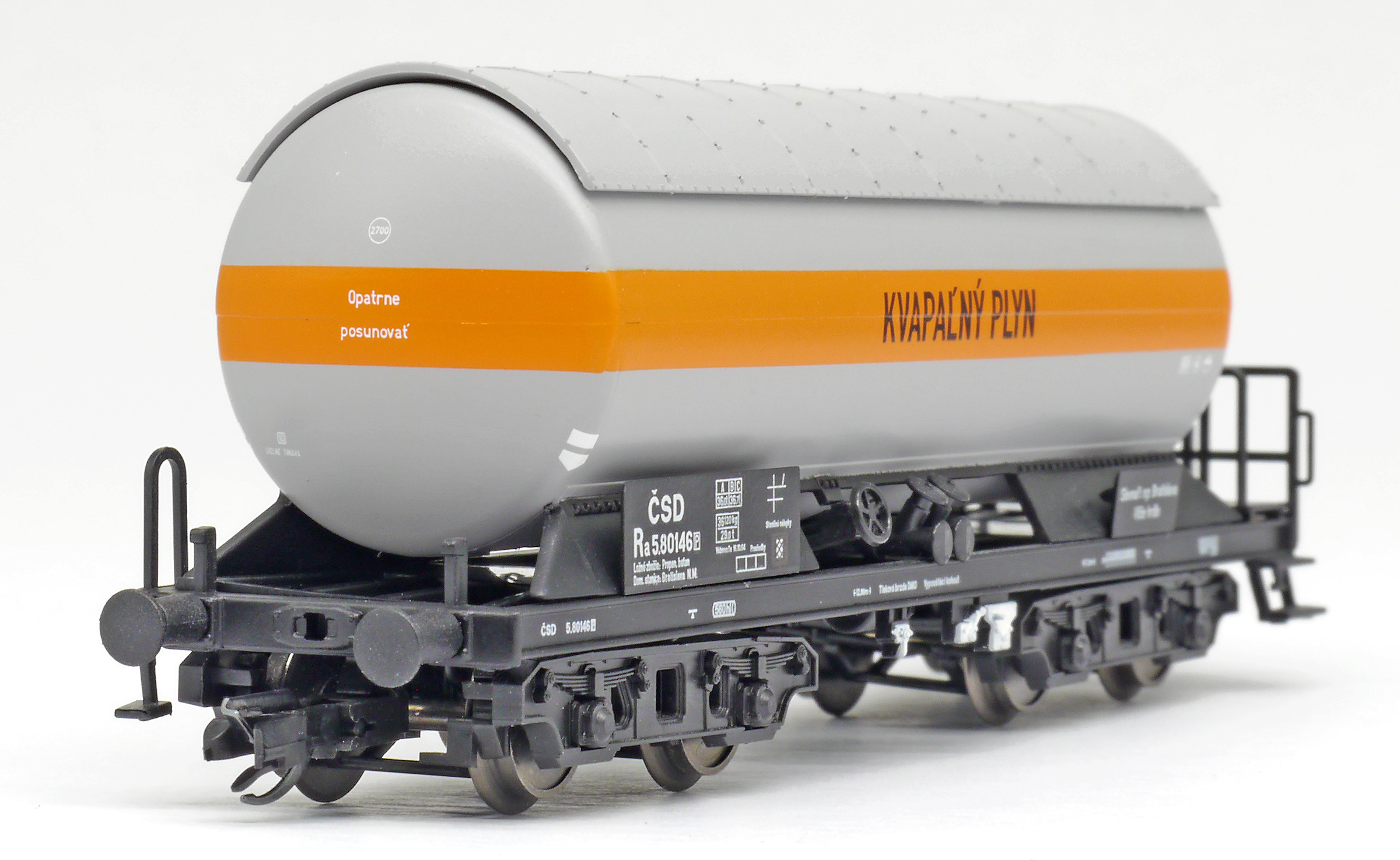 | kotlový vůz šedý s oranžovým pruhem „KVAPAĹNÝ PLYN “ |