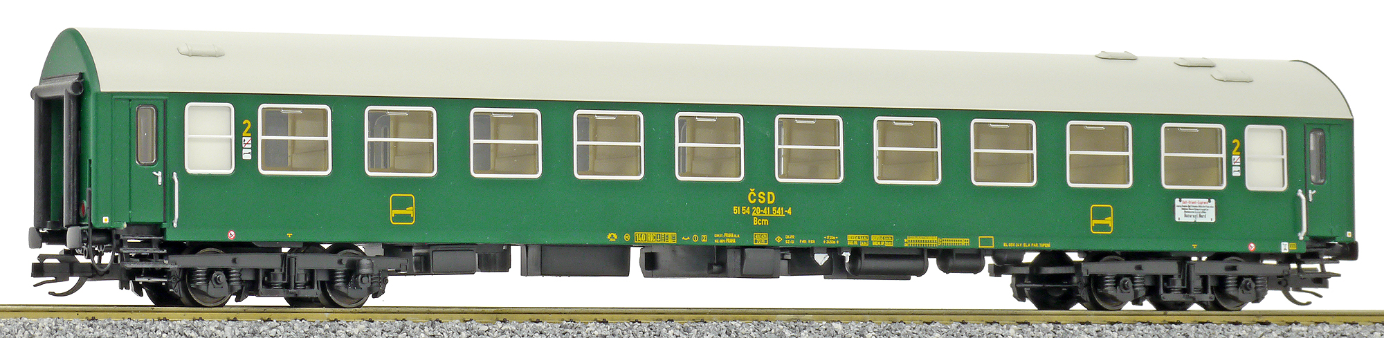 měřítko 1:120 - rozchod kolejí 12 mm vnitřní interiér vozu je možná instalace osvětlení interiéru kinematika krátkého spřáhla (KKK) podle normy NEM 358 410 mm - celková délka modelu přes nárazníky 2x4 - celkový počet náprav nebo rozložení náprav 400 g - hmotnost brutto - model včetně prodejního obalu