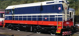 | dieselová lokomotiva tmavě modrá, červený rám |