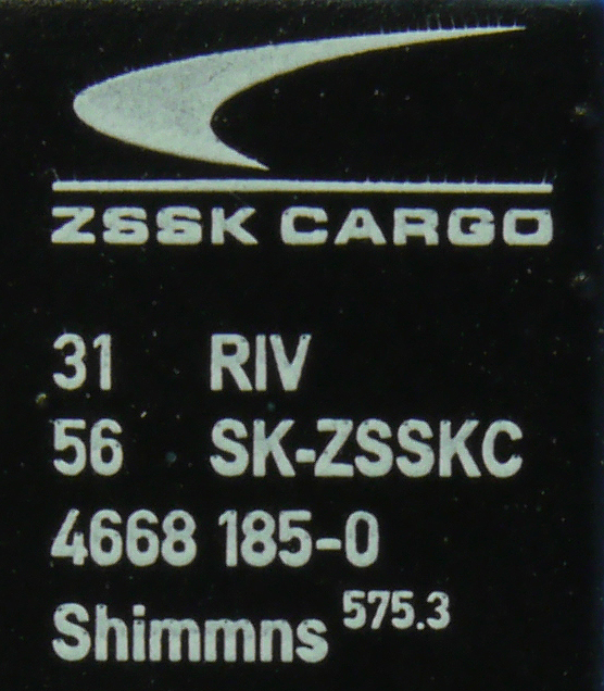 | • 31 56 4668 185-0 | → | nákladní, s podvozky, pevný rozchod, ve vlastnictví železniční správy, RIV, PPV |