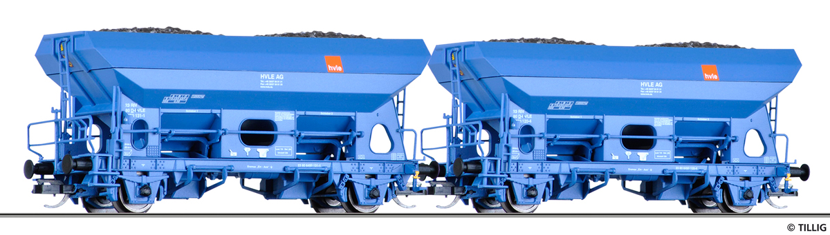 | set dvou samovýsypných vozů s nákladem uhlí |