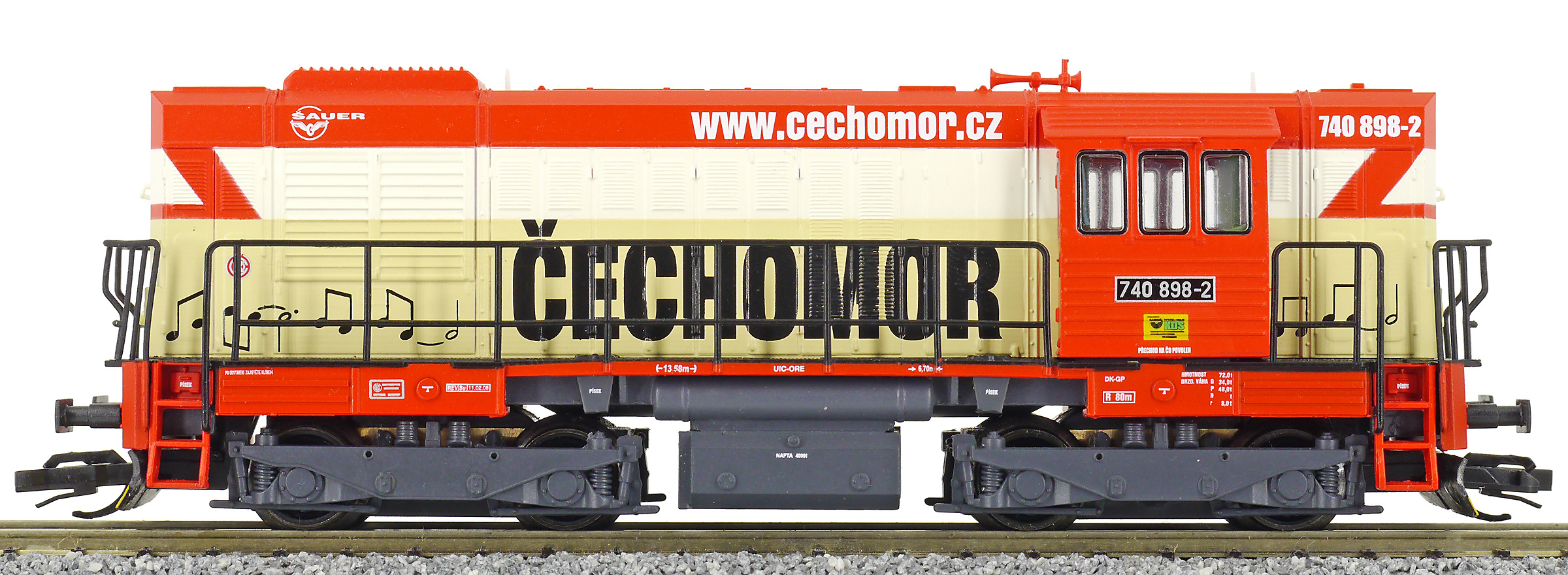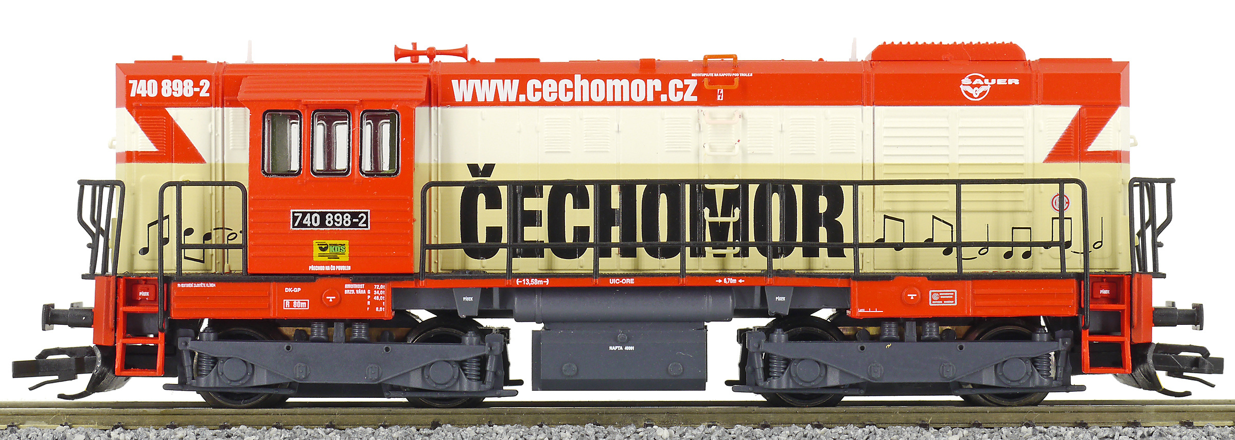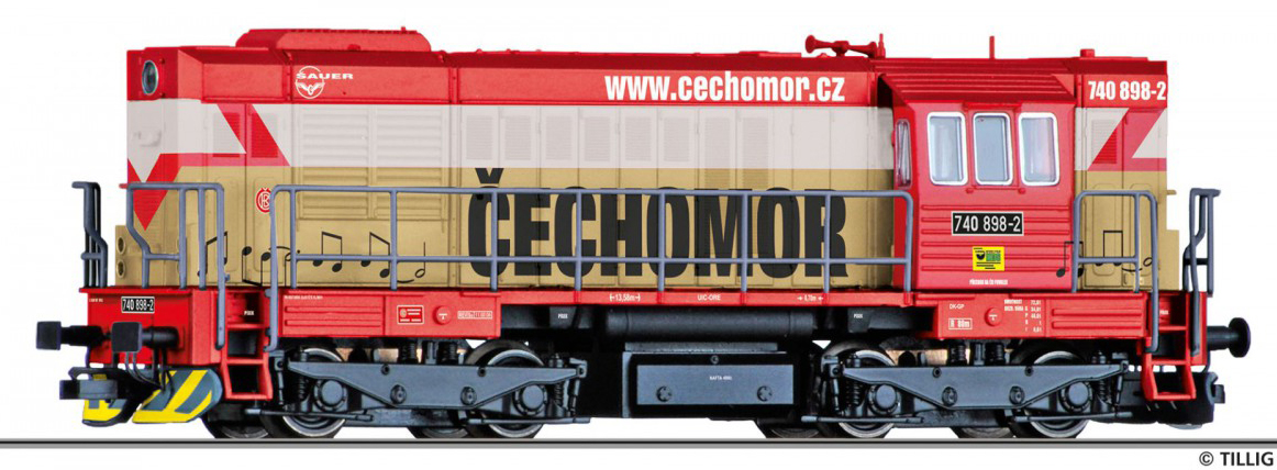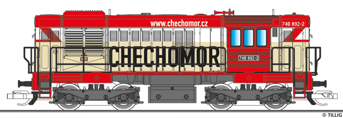 | dieselová lokomotiva s reklamou „ČECHOMOR“ |