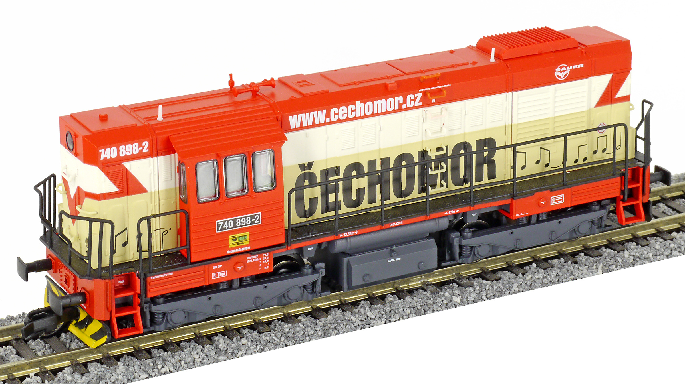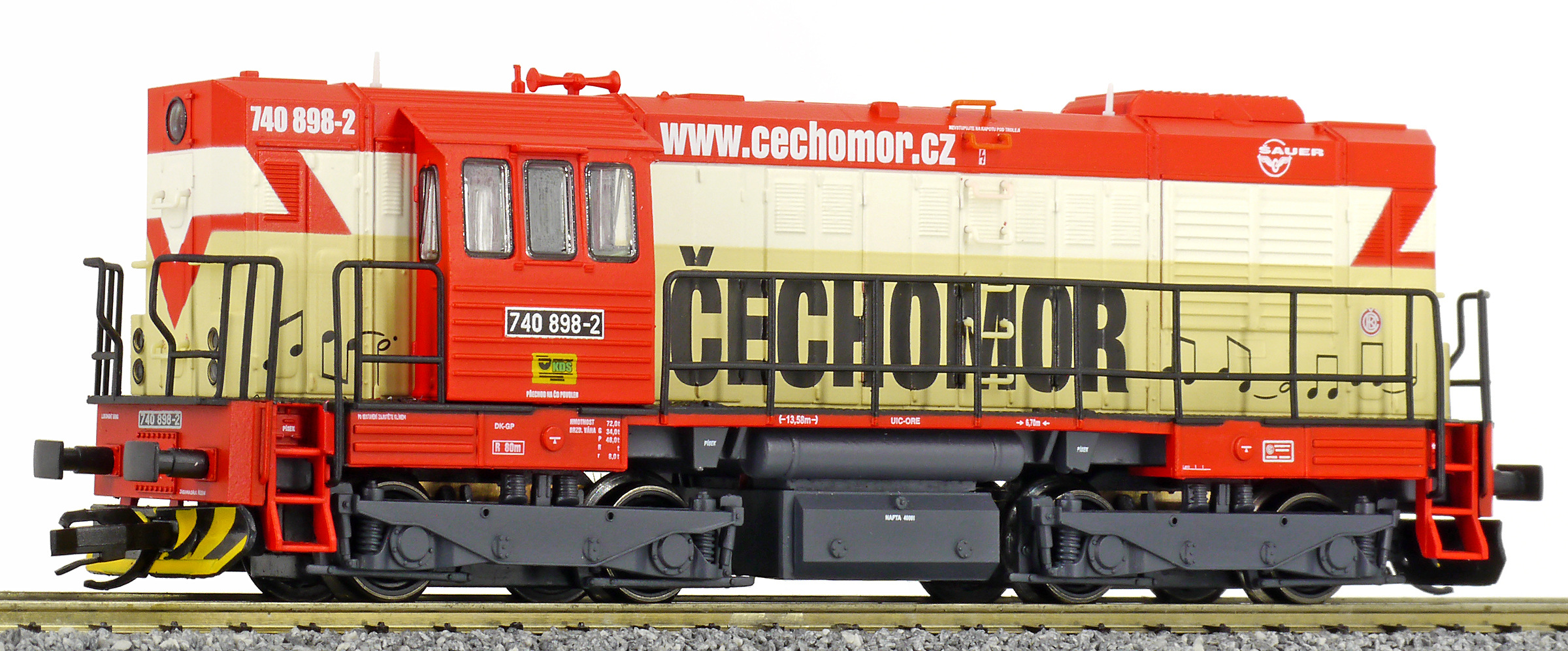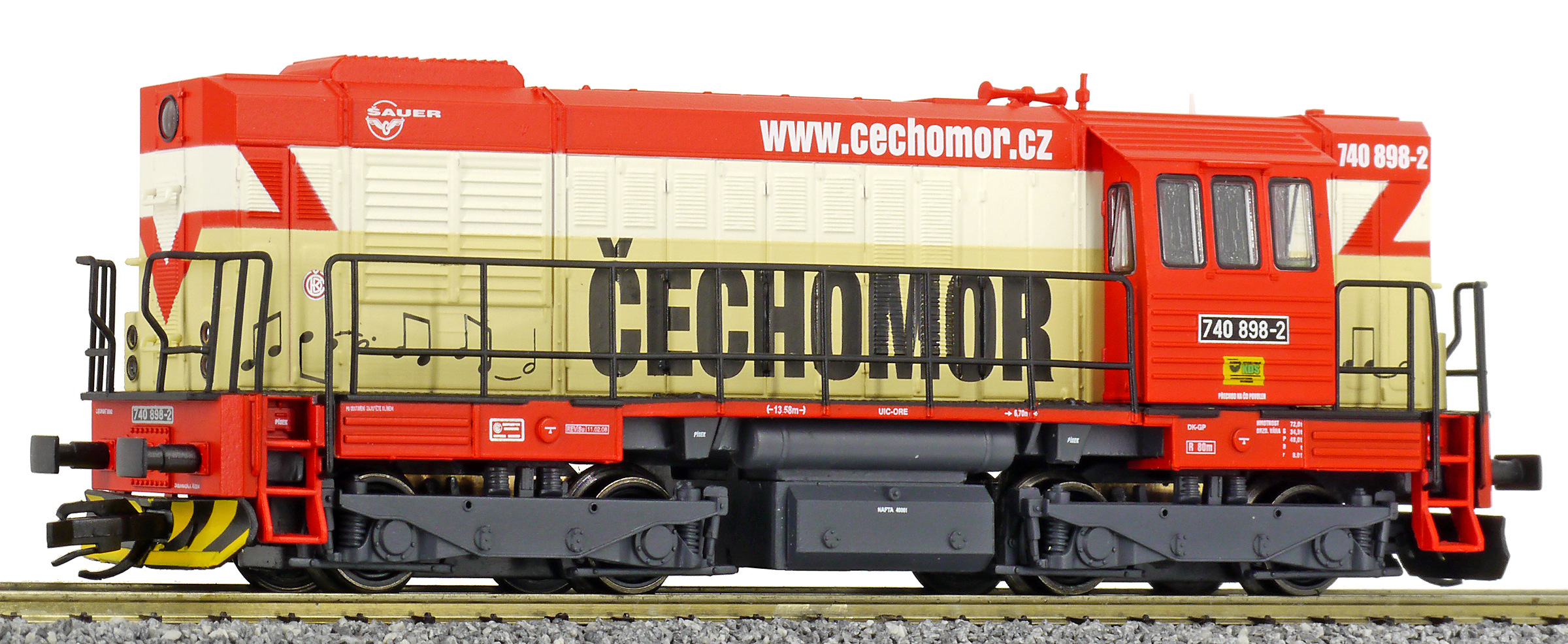 | dieselová lokomotiva s reklamou „ČECHOMOR“ |