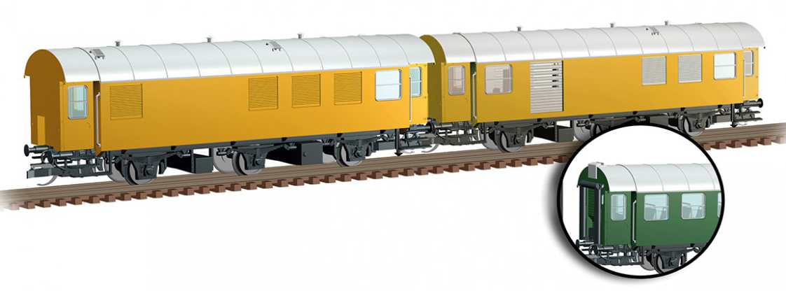 | obytný-spací vůz do pracovního vlaku žlutý s šedou střechou |