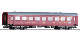 | jídelní vůz vínově červený s šedou střechou „Mitropa“ |