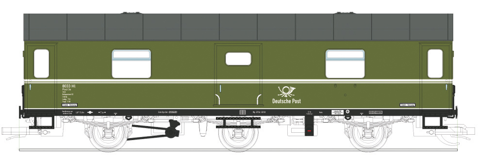 | rekonstruovaný poštovní vůz zelený s šedou střechou |