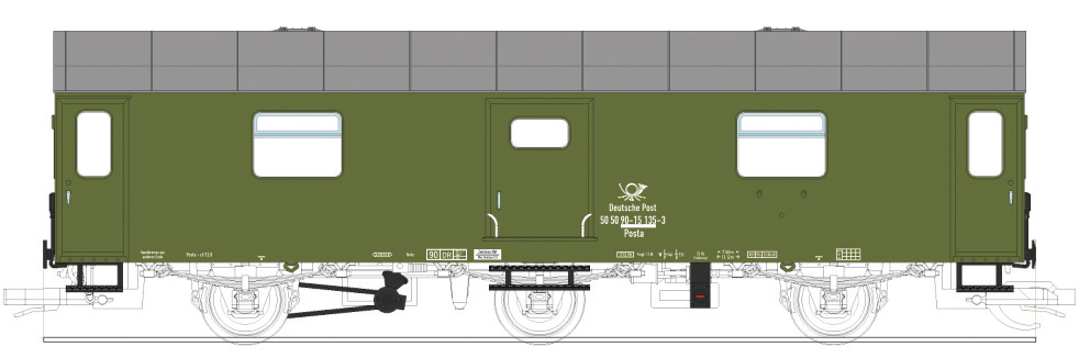 | rekonstruovaný poštovní vůz zelený s šedou střechou |