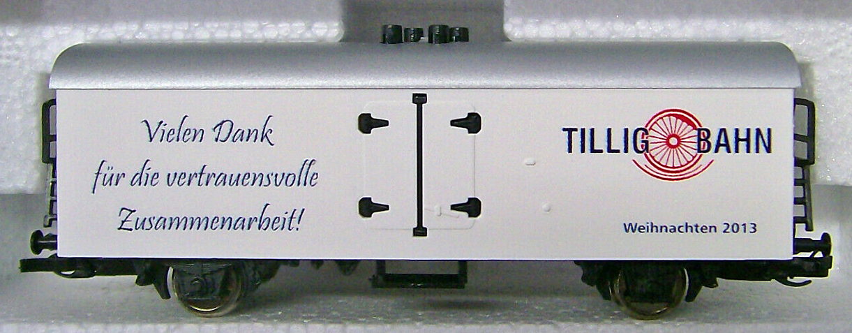 Popis   chladící vůz bílý se stříbrnou střechou a s reklamním potiskem „Weihnachten 2013“