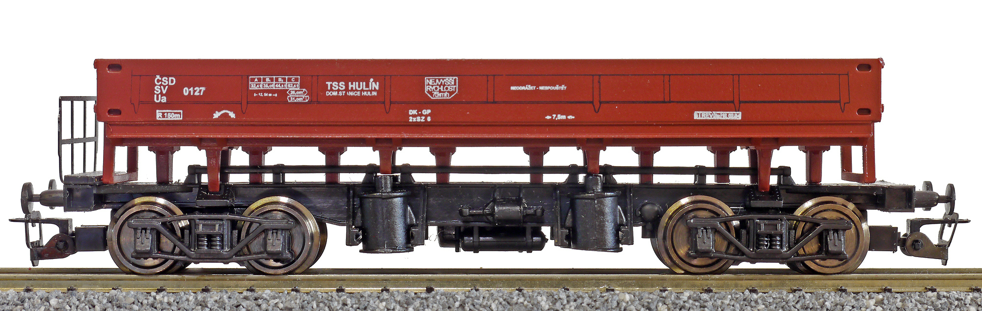 Popis   nákladní vůz oboustranně výsypný červený s černým pojezdem