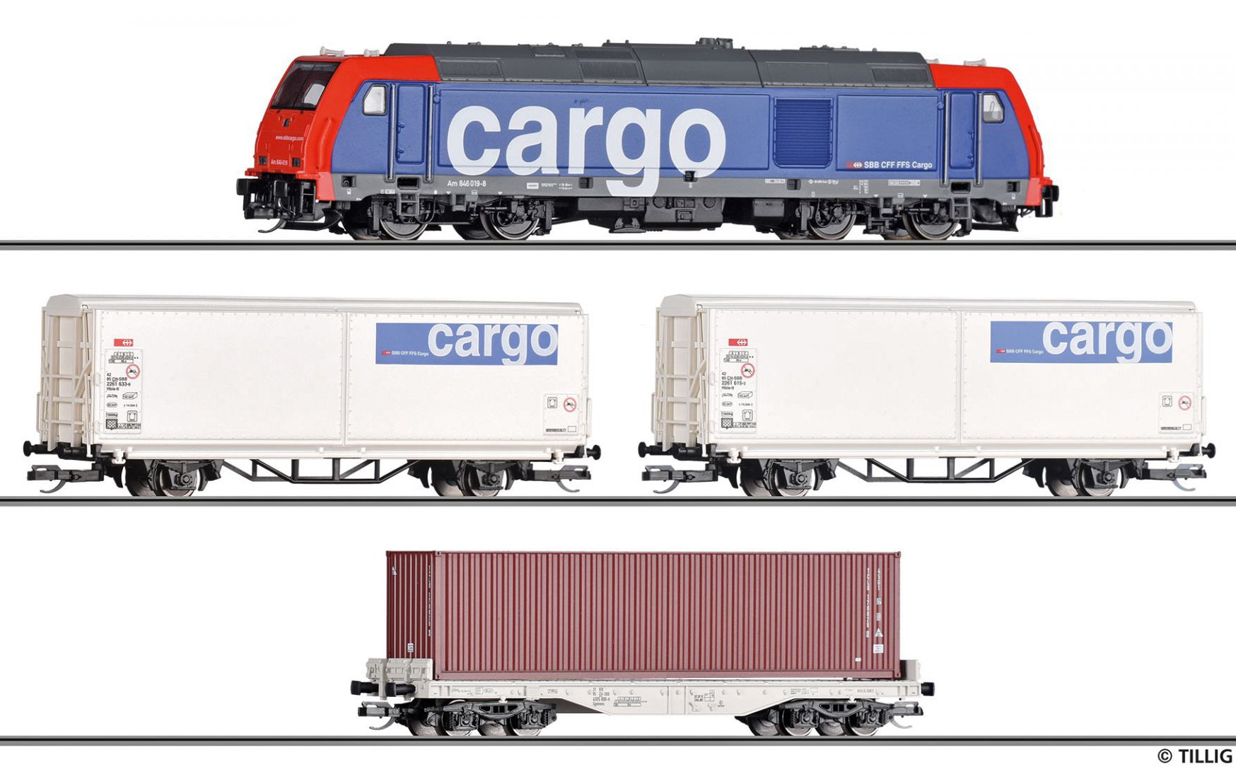 | set dieselové lokomotivy „TRAXX“ a tří nákladních vozů |
