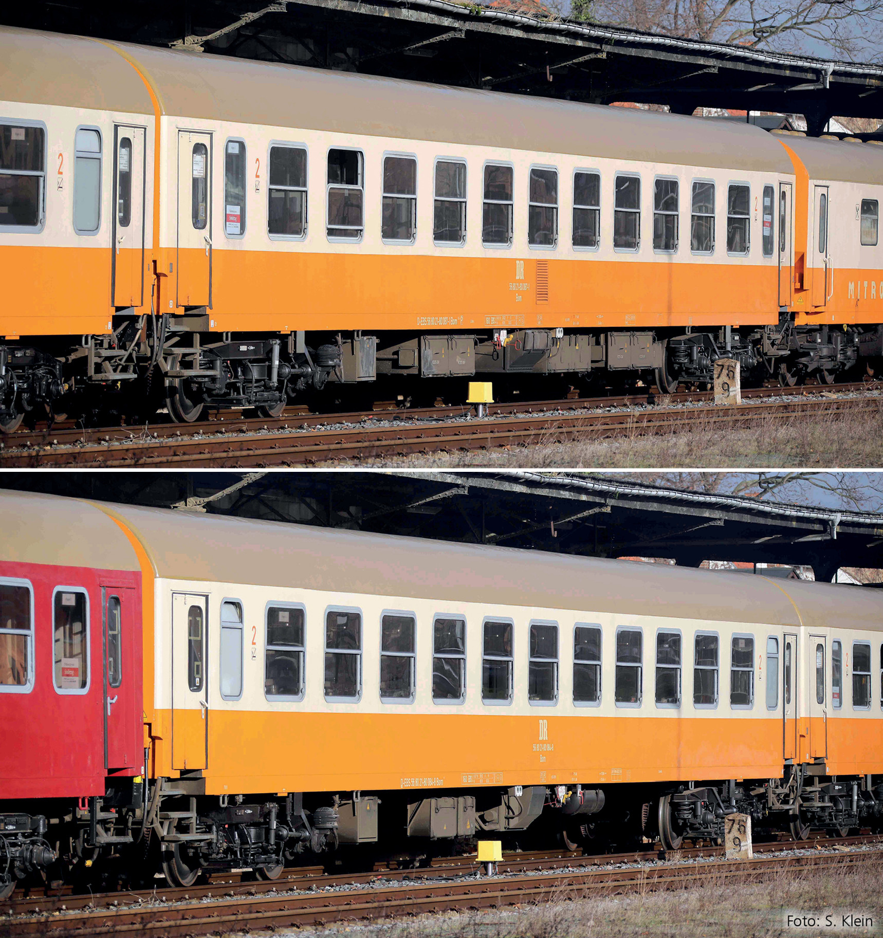 Popis   rychlíkový vůz oranžový-slonová kost s olivovou střechou 2. tř.