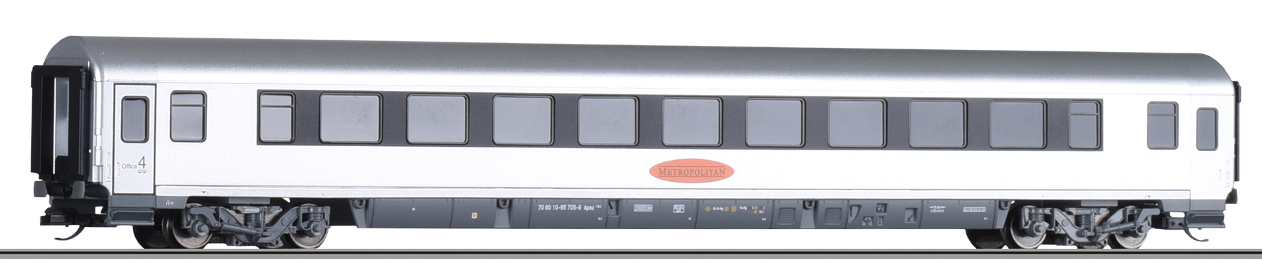 | rychlíkových vůz stříbrný s logem „Metropolitan“ |