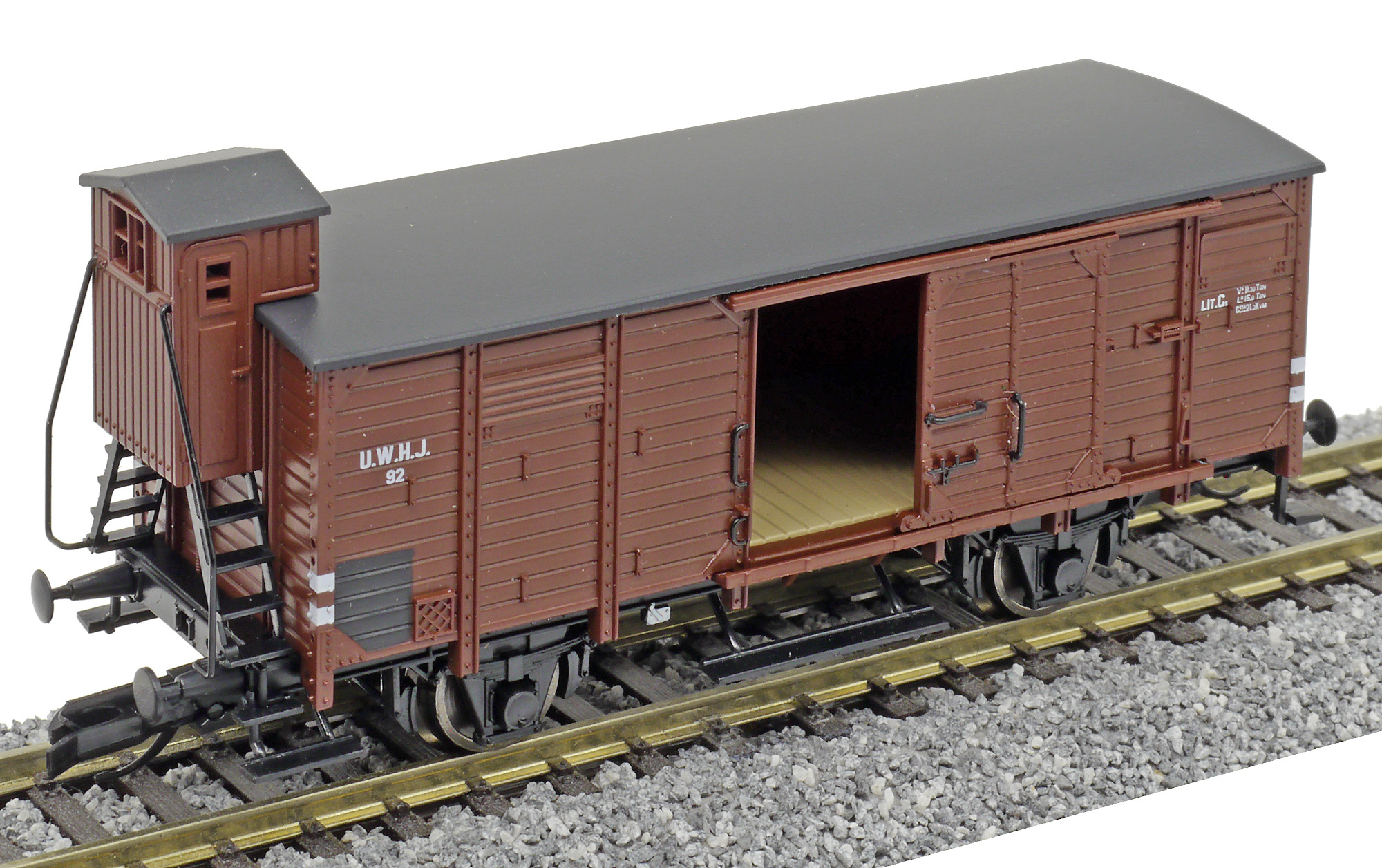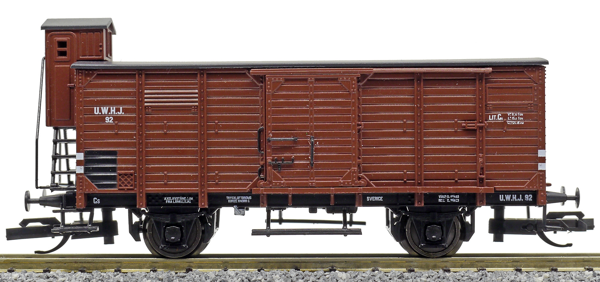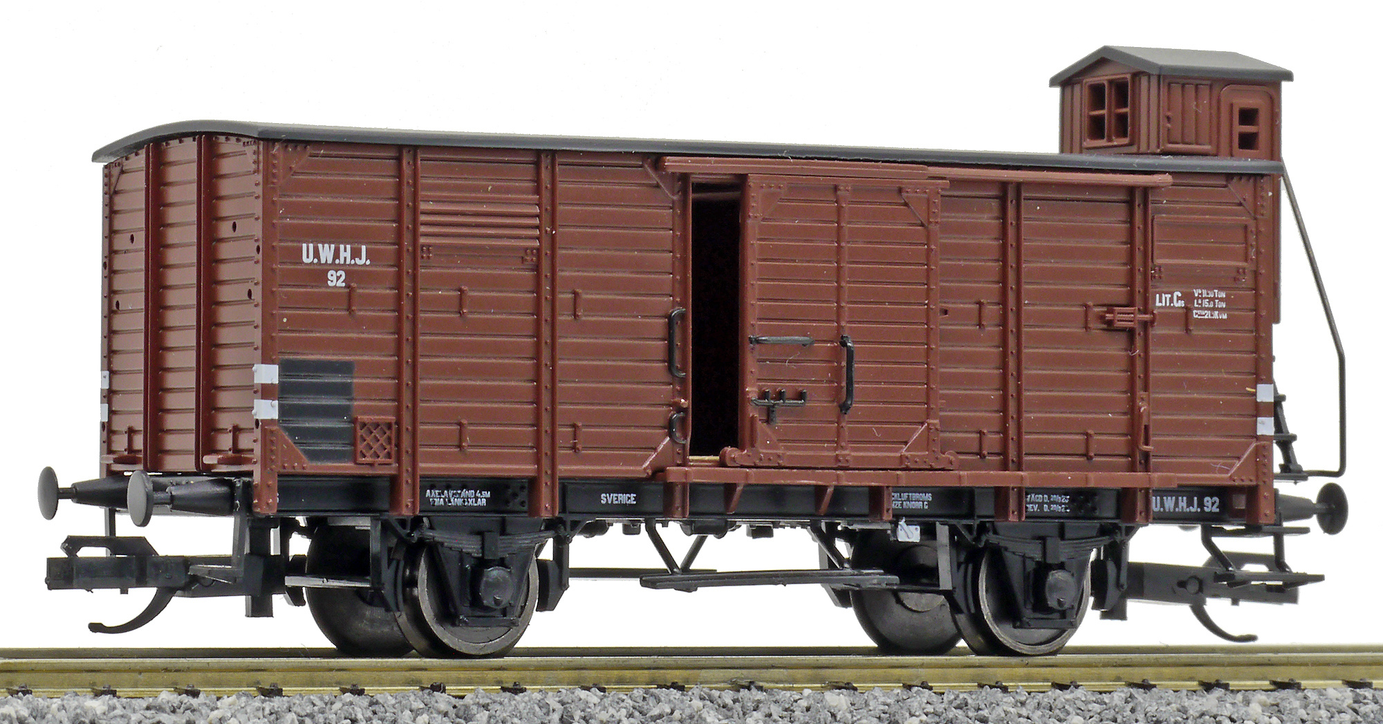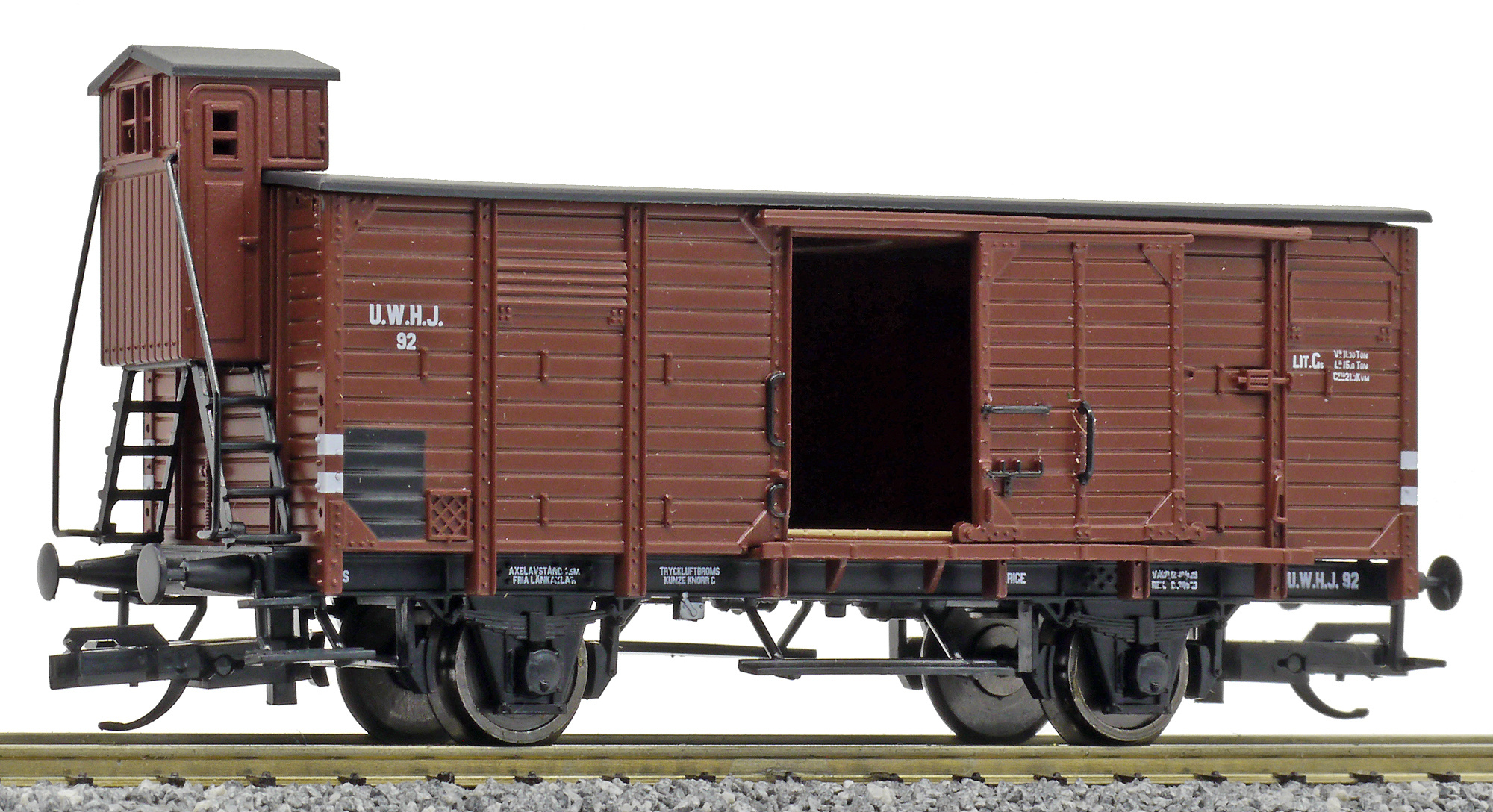 krytý nákladní vůz červenohnědý s brzdařskou budkou