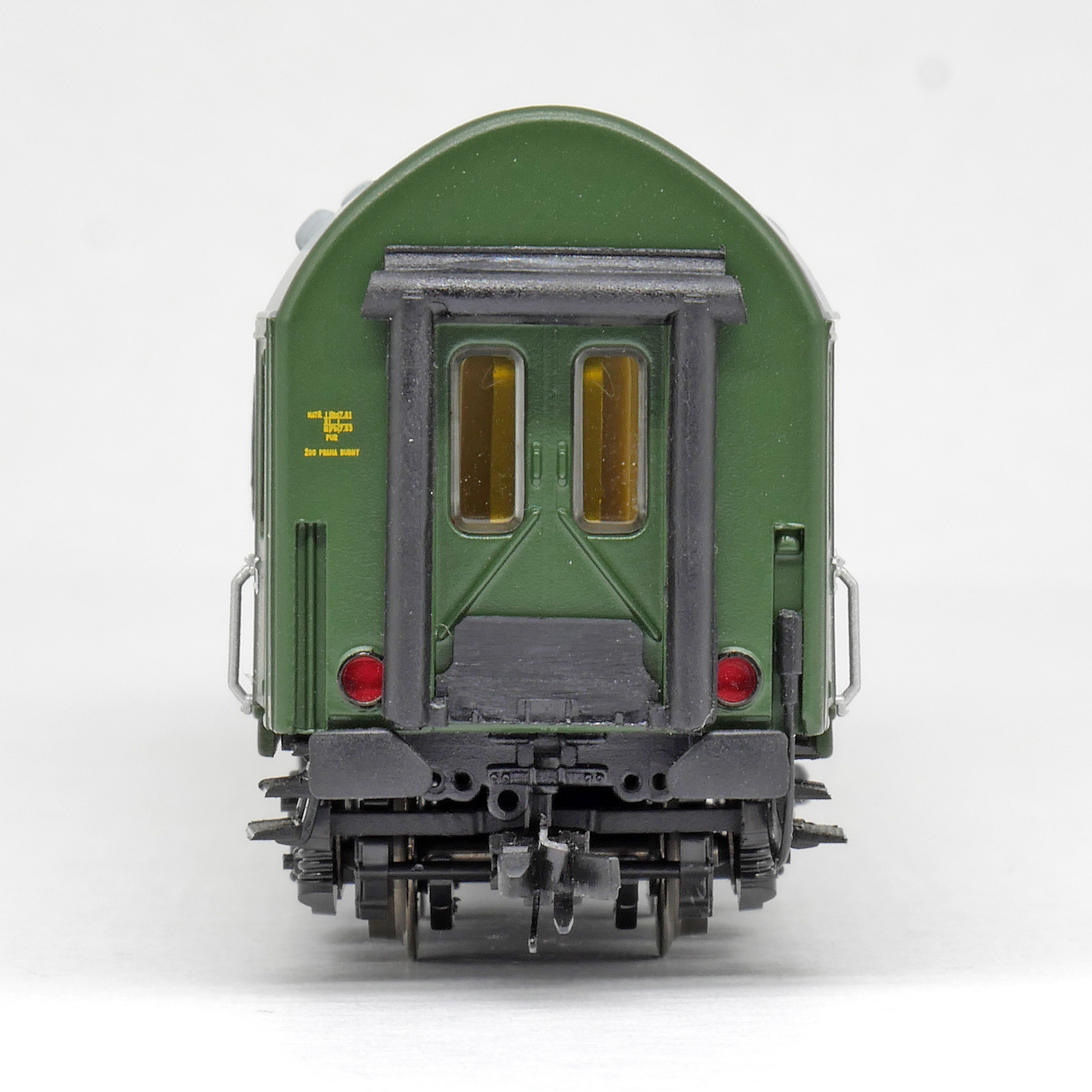 | rychlíkový vůz zelený s šedou střechou 2. tř. a zavazadlovým oddílem „Ostravan“ |