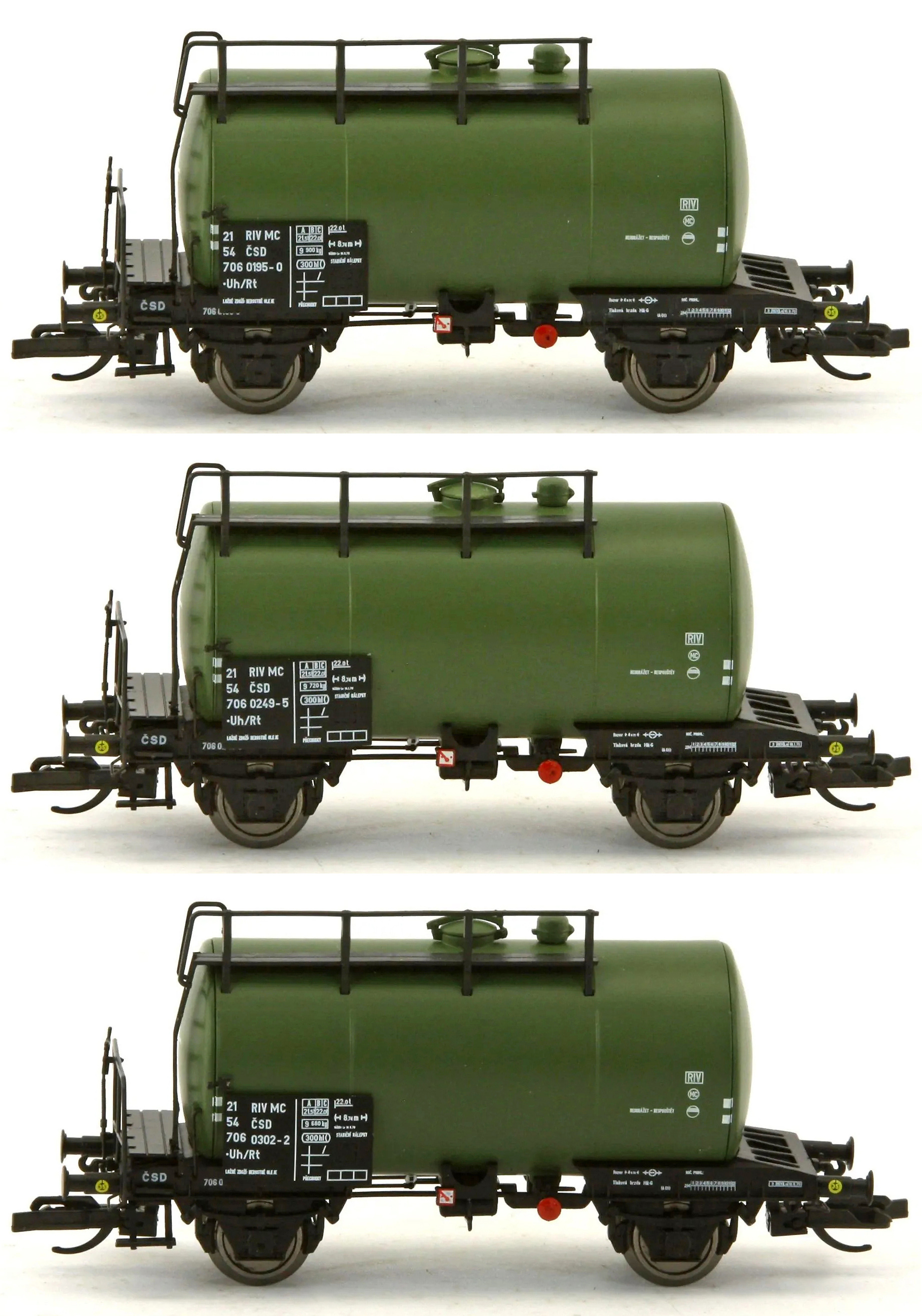 | set tří zelených kotlových vozů |