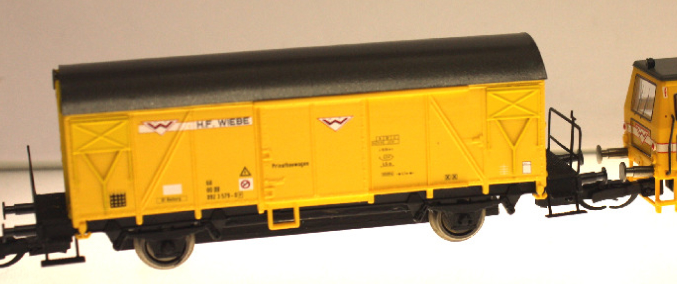 krytý nákladní vůz žlutý se stříbřitou střechou „WIEBE“