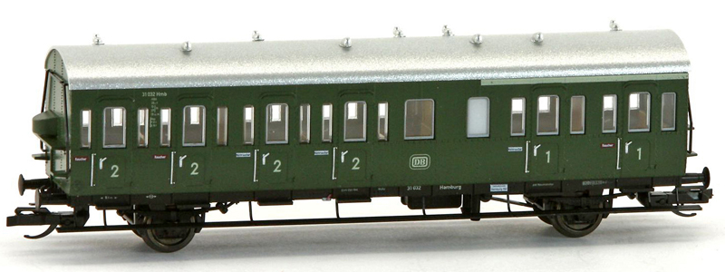 | oddílový osobní vůz zelený se stříbrnou střechou 1./2. tř. |