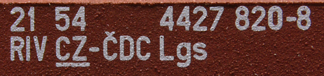 | • 21 54 4427 820-8 | → | nákladní, nezávislé nápravy, pevný rozchod, ve vlastnictví železniční správy, RIV, PPV |