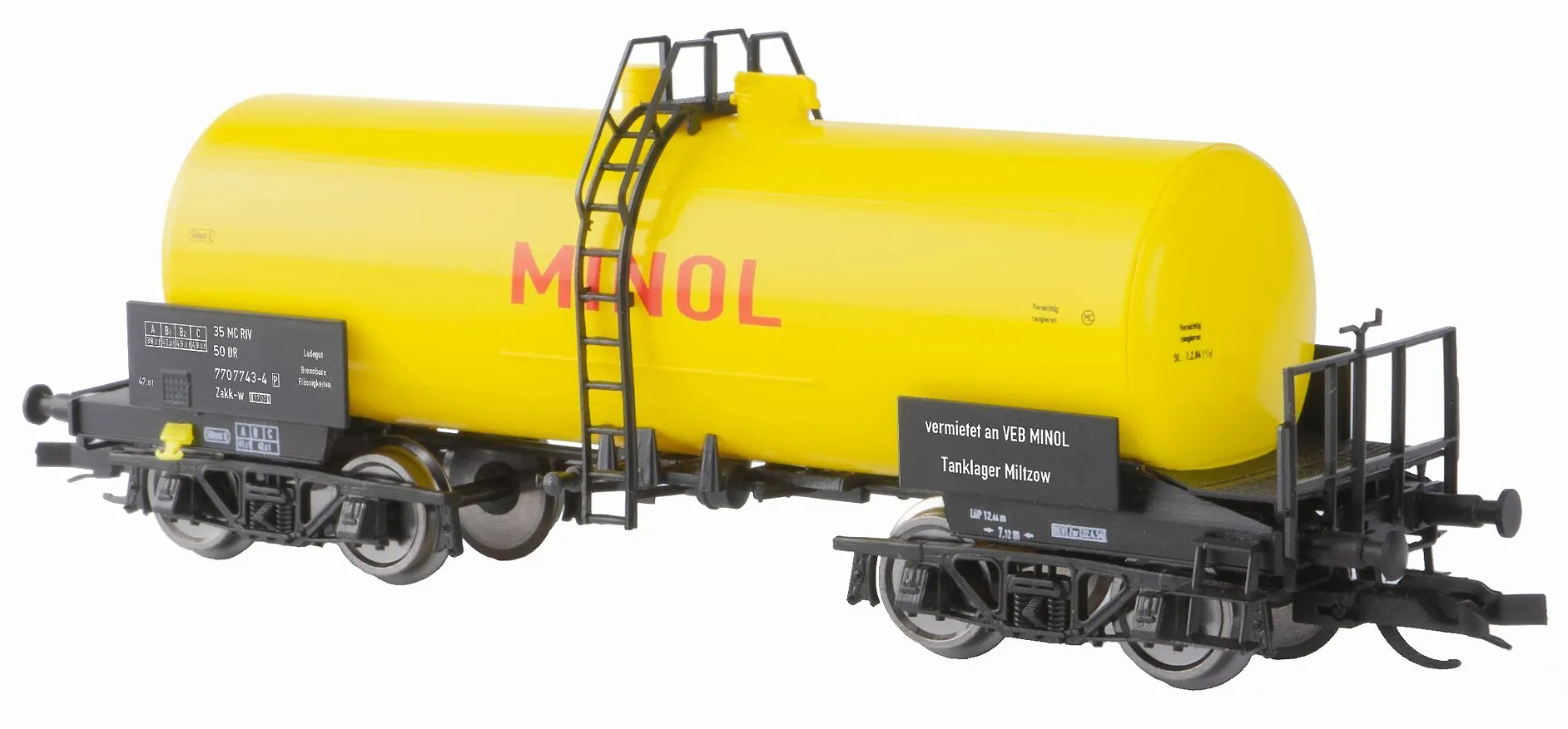 | kotlový vůz žlutý s černým rámem „MINOL“ |
