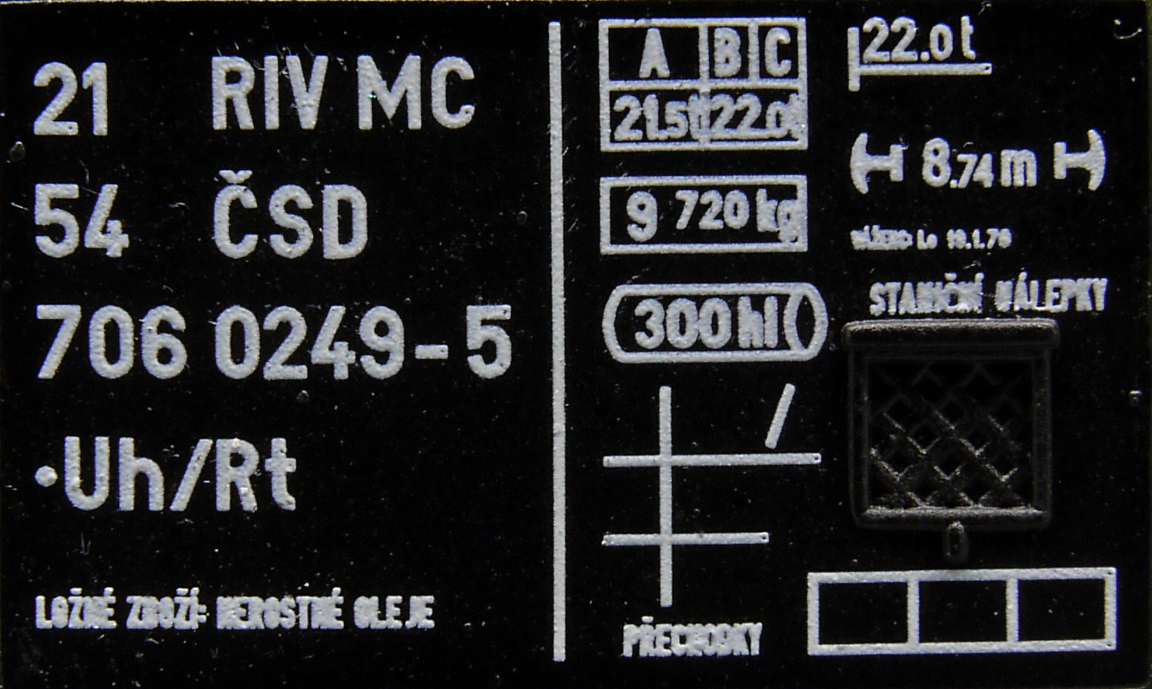 | • 21 54 706 0249-5 | → | nákladní, nezávislé nápravy, pevný rozchod, ve vlastnictví železniční správy, RIV, PPV |
