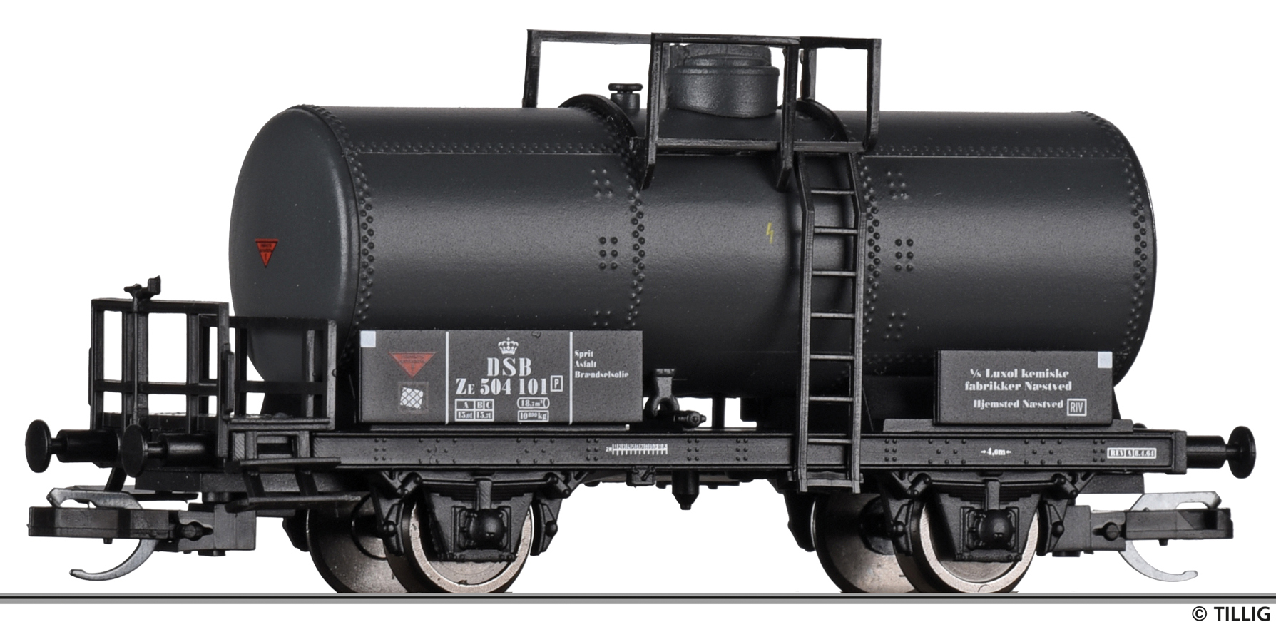 | kotlový vůz černý s brzdařskou plošinou „Luxol Kemiske Fabrikker A/S“ |