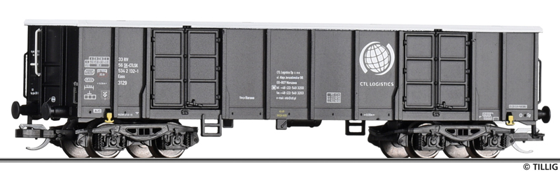 | vysokostěnný nákladní vůz antracitový s logem „CTL Logistics“ |