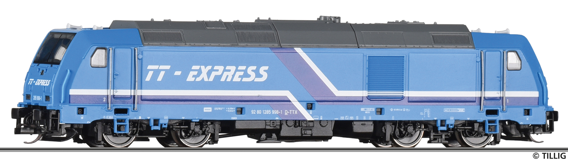 | dieselová lokomotiva v barevném schematu „TT-Express“ |