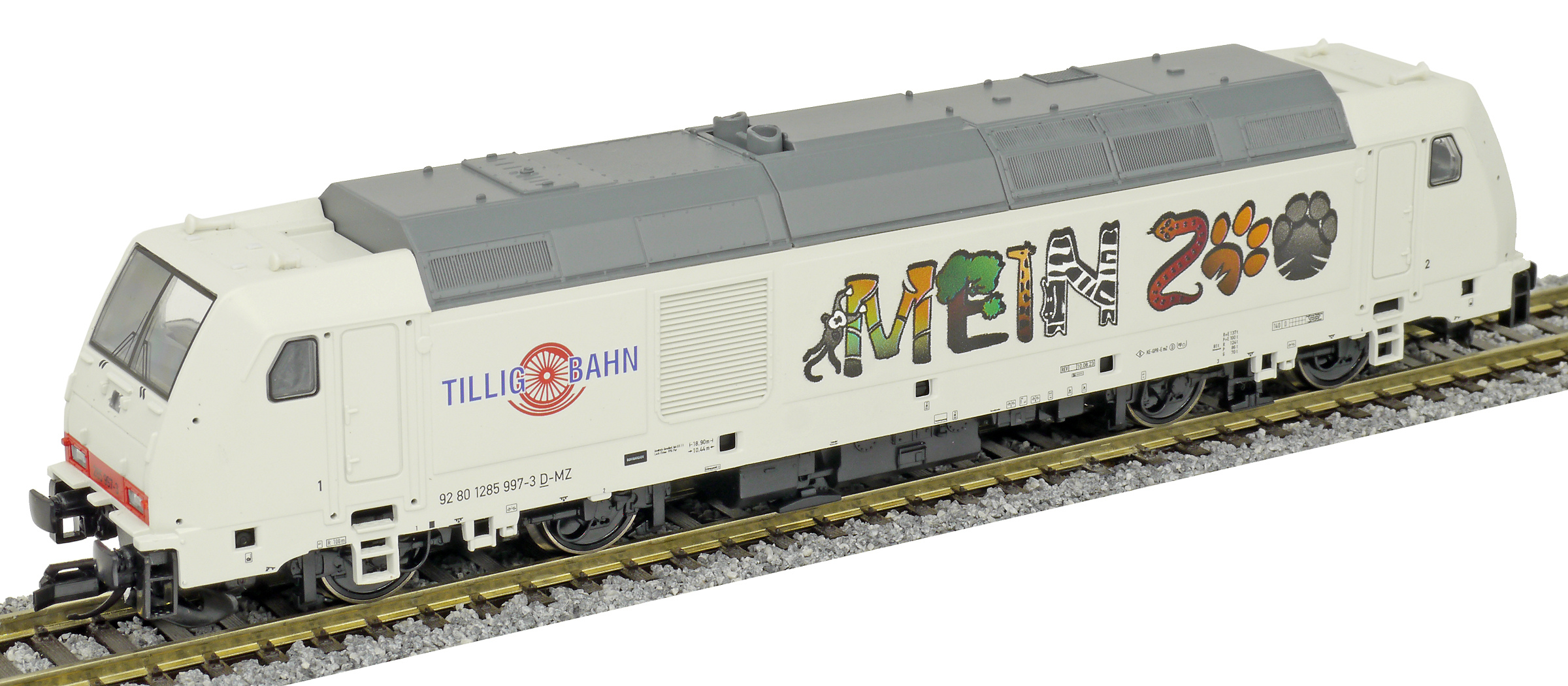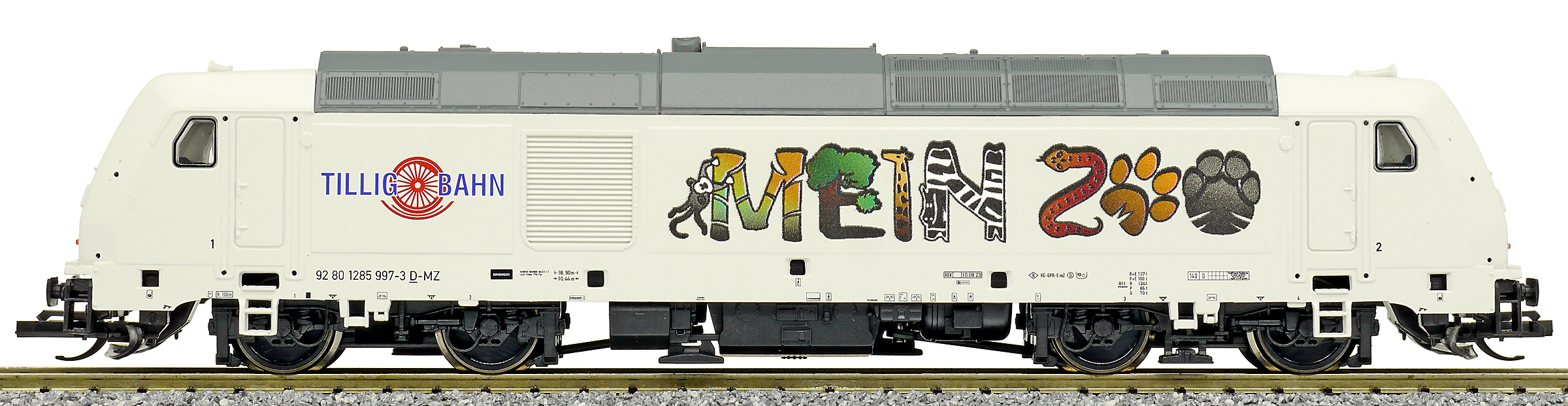 | dieselová lokomotiva s reklamním potiskem „Mein Zoo“ |