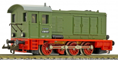 | dieselová lokomotiva zelená s červeným rámem a pojezdem |