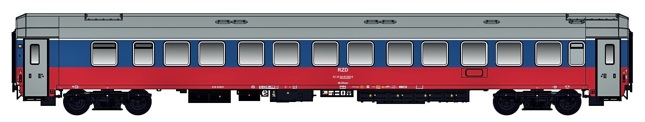 | lůžkový vůz červený-modrý s šedou střechou |