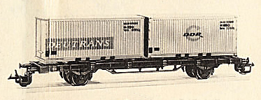 | nákladní plošinový vůz černý se dvěma 20' kontejnery „DR“ |