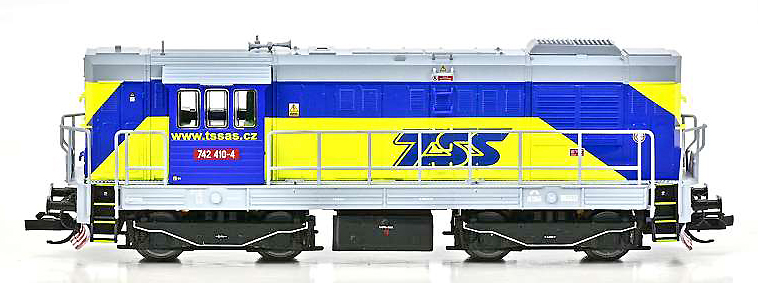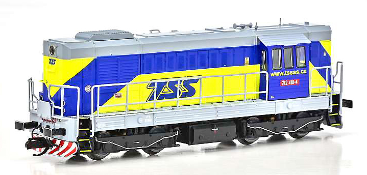 | dieselová lokomotiva modrá-žlutá v barevném schematu „TSS“ |