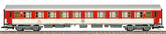 | rychlíkový vůz červený-bílý s šedou střechou 2. tř. |