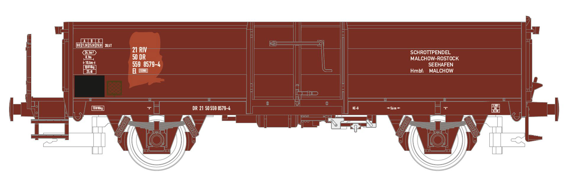měřítko 1:120 - rozchod kolejí 12 mm kinematika krátkého spřáhla (KKK) podle normy NEM 358 252 mm - celková délka modelu přes nárazníky 3x2 - celkový počet náprav nebo rozložení náprav
