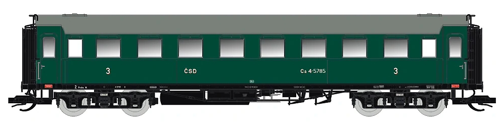 | oddílový osobní vůz zelený s šedou střechou 3. tř. |