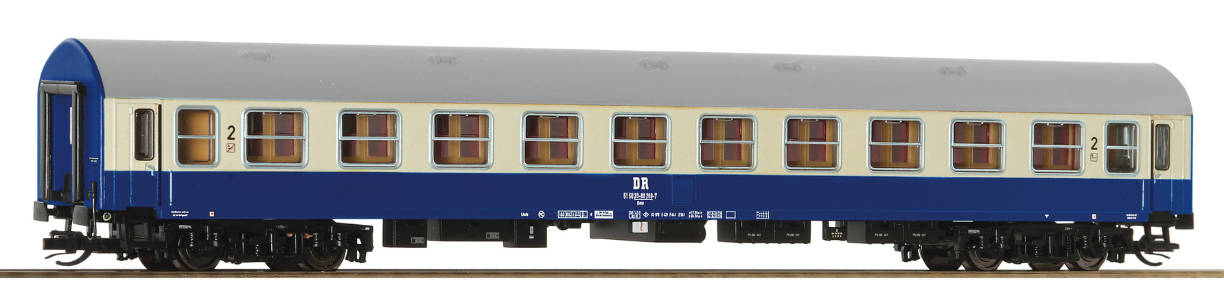 | rychlíkový vůz modrý-slonová kost s šedou střechou 2. tř. |
