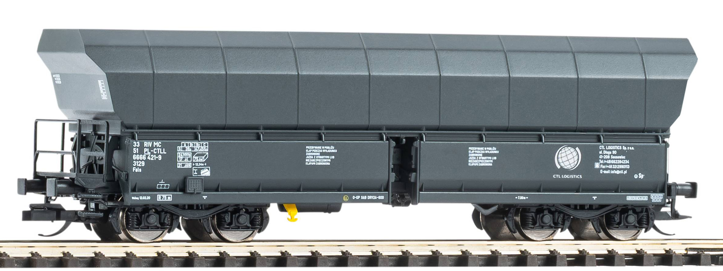 měřítko 1:120 - rozchod kolejí 12 mm kinematika krátkého spřáhla (KKK) podle normy NEM 358 222 mm - celková délka modelu přes nárazníky 2c4 - celkový počet náprav nebo rozložení náprav