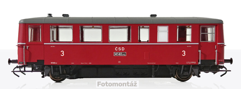 | motorový vůz červený s šedou střechou 3. tř. |