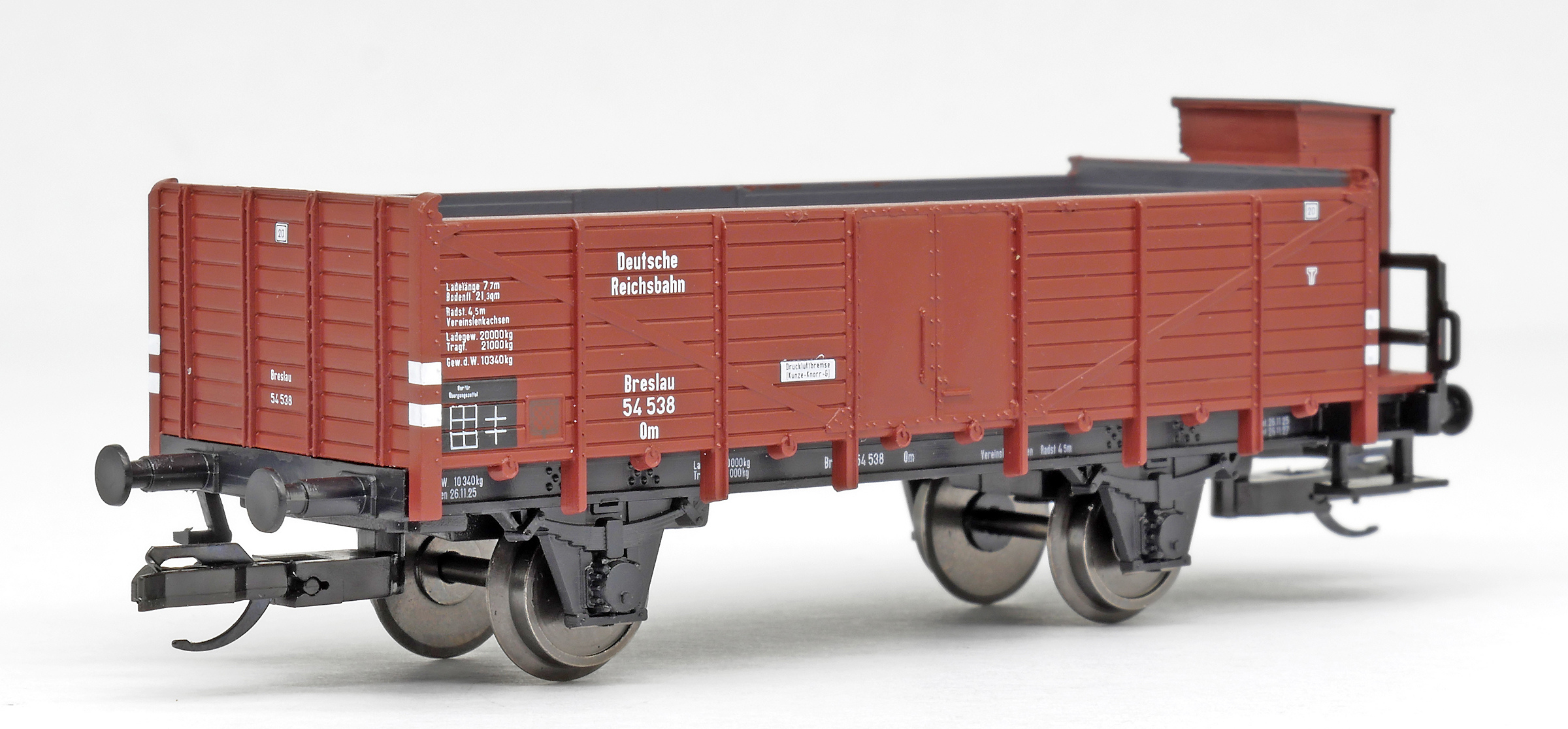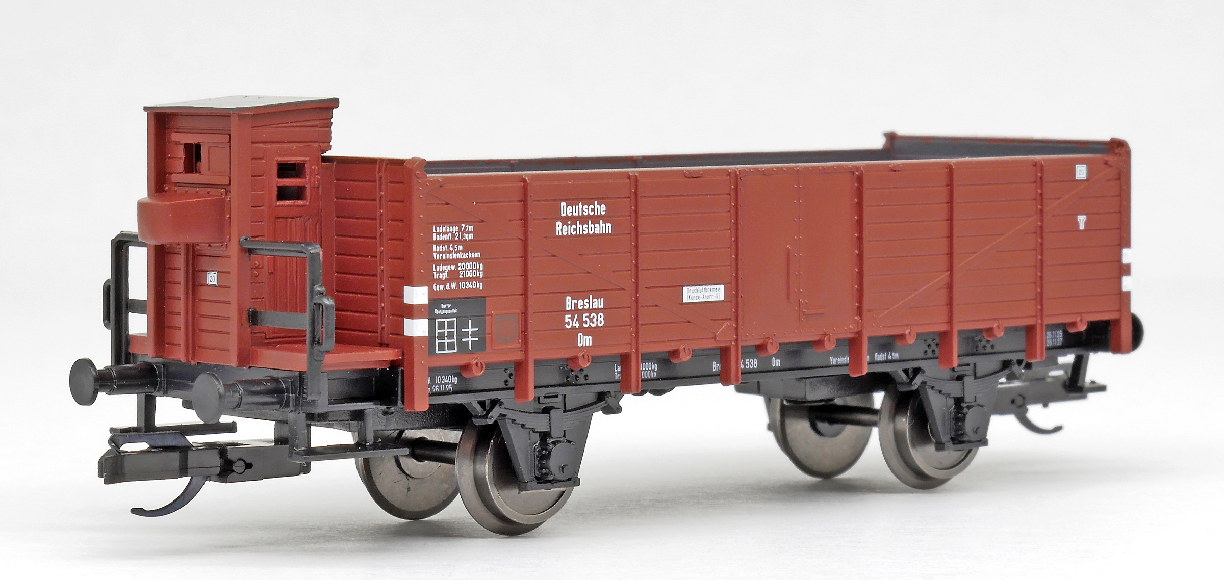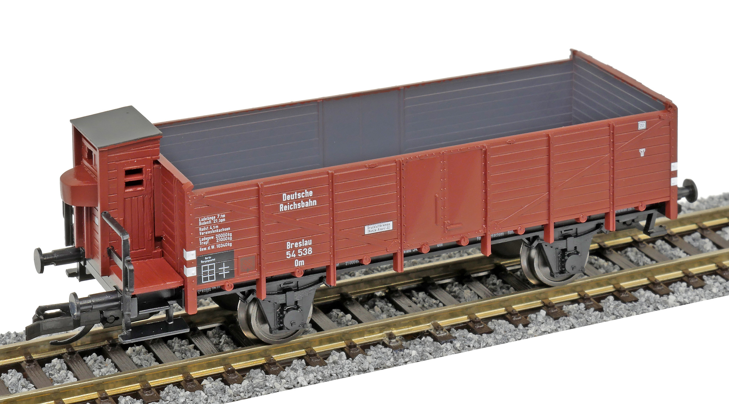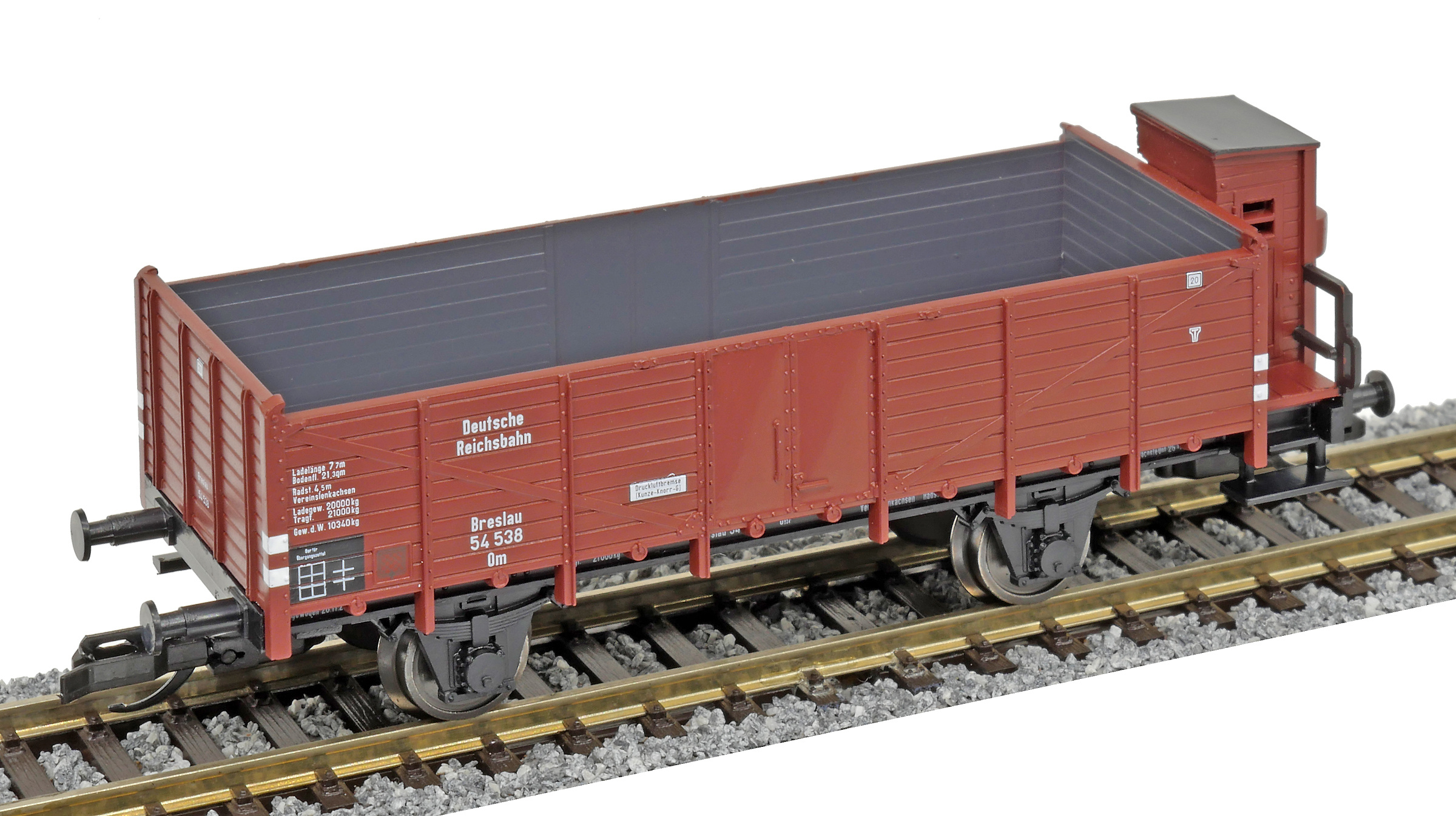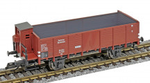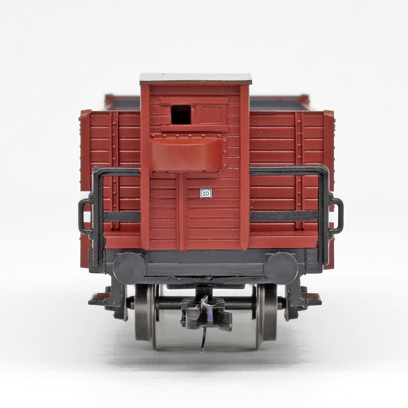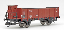 | otevřený nákladní vůz červenohnědý s brzdařskou budkou |