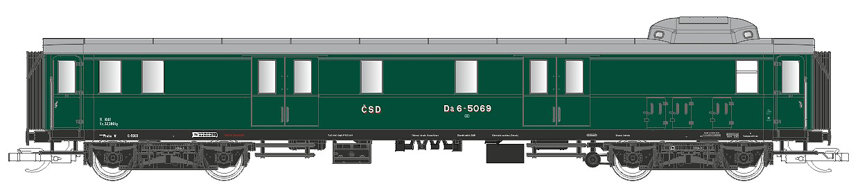 | osobní vůz zelený s šedou střechou 3. tř. |