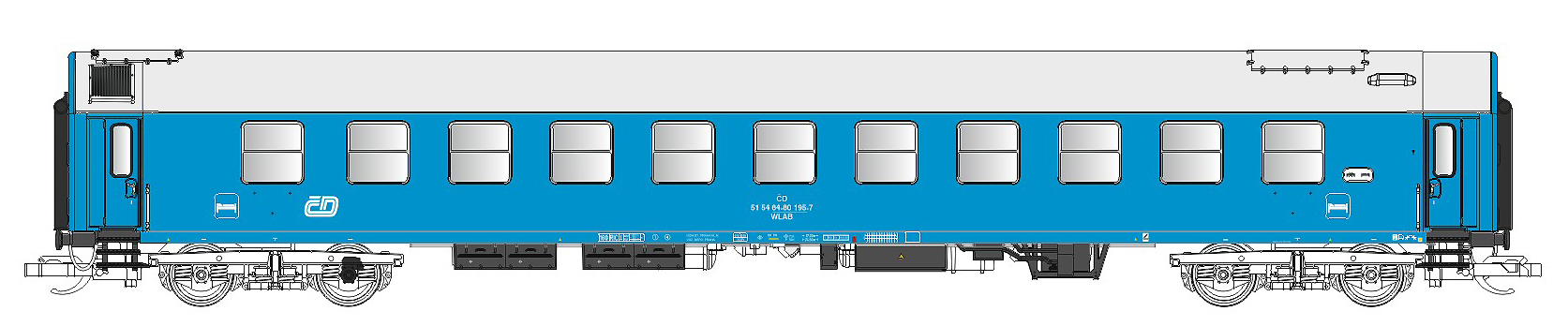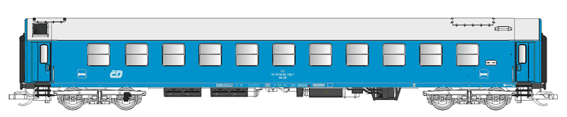 | lůžkový vůz modrý s šedou střechou 2. tř. |