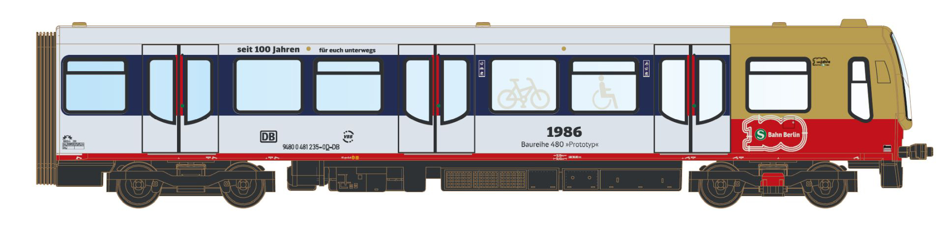 | řídící vůz v barvách „S-Bahn Berlin“, výroční „100 let“ |