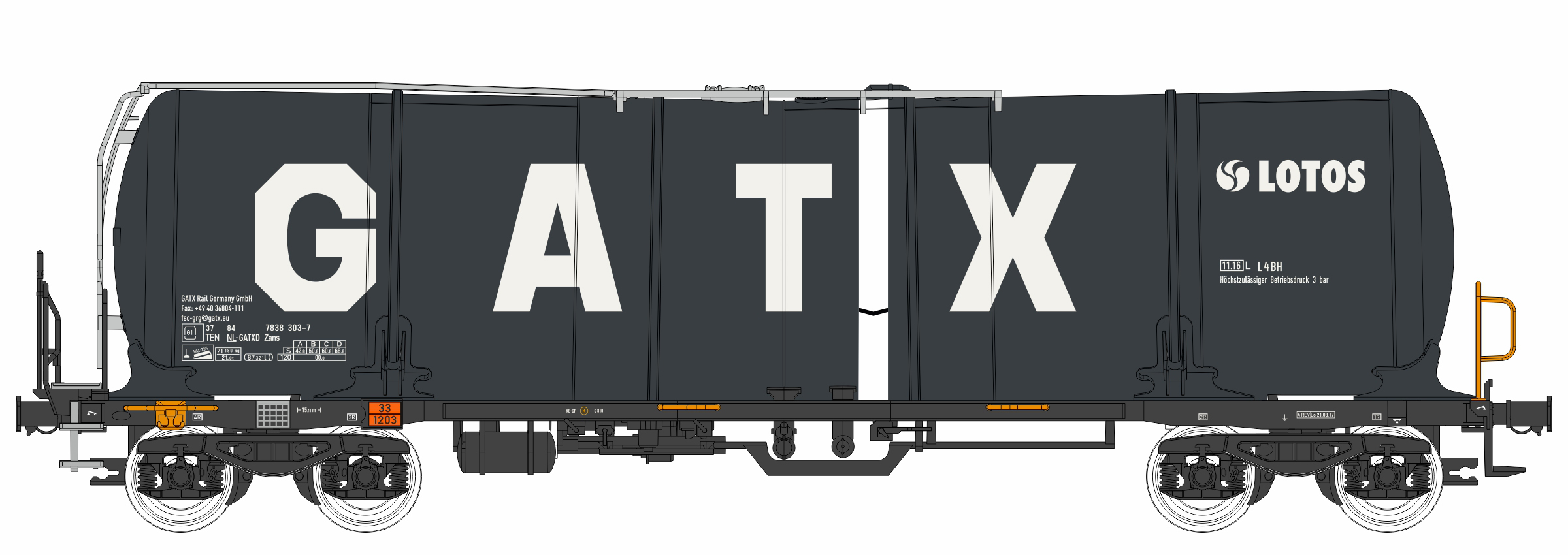 | kotlový vůz černý s logem „GATX/LOTOS“ |