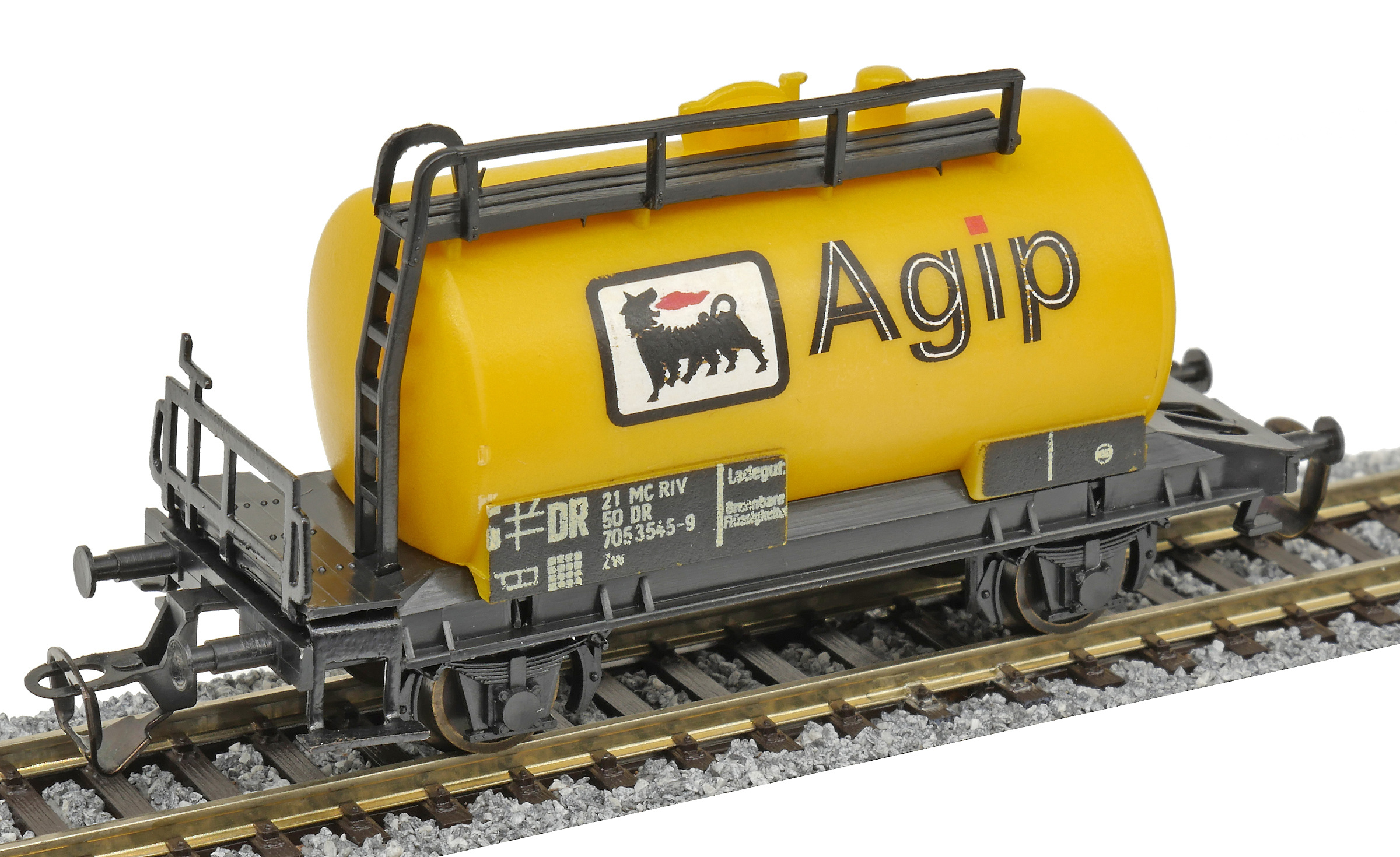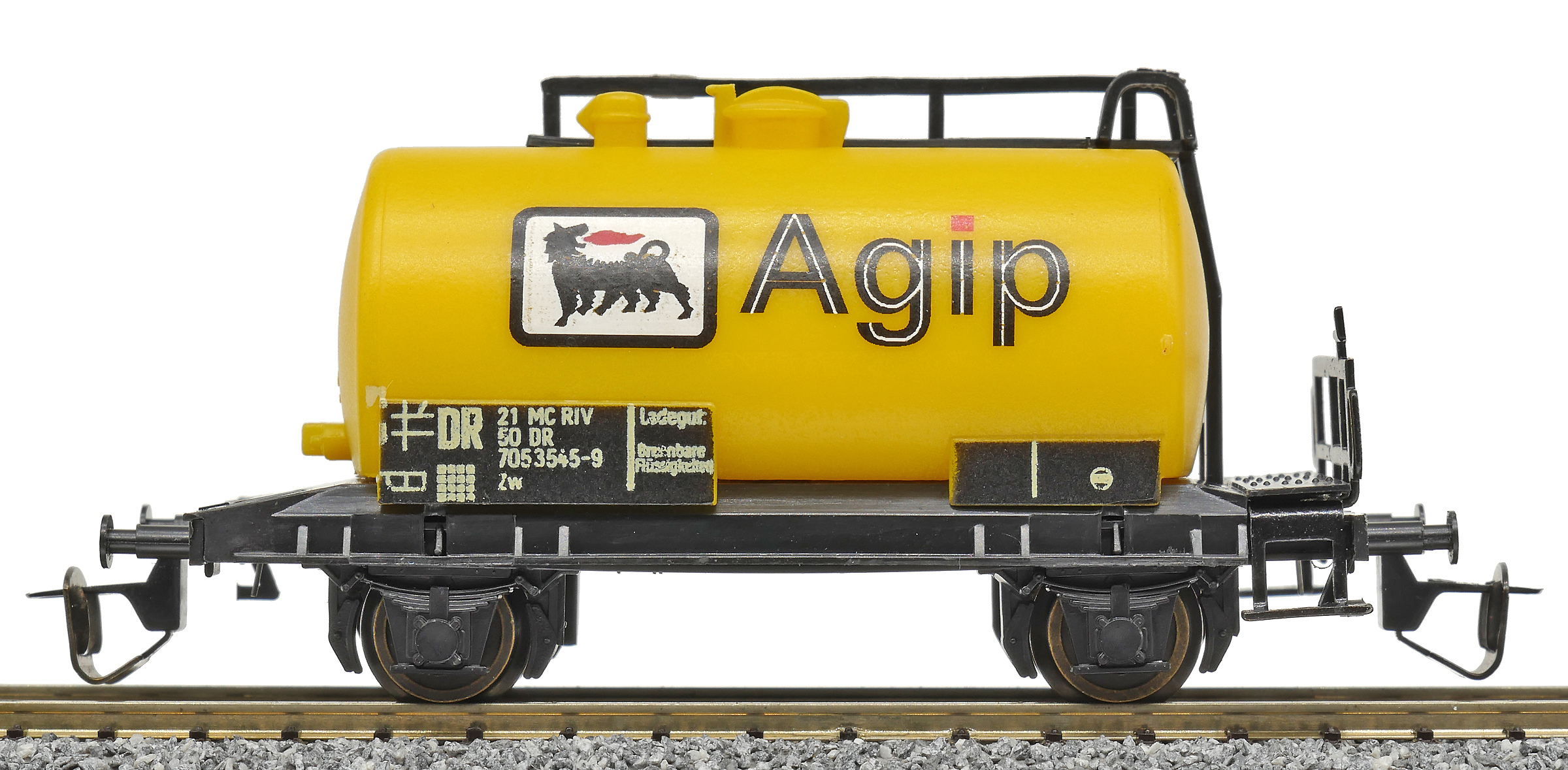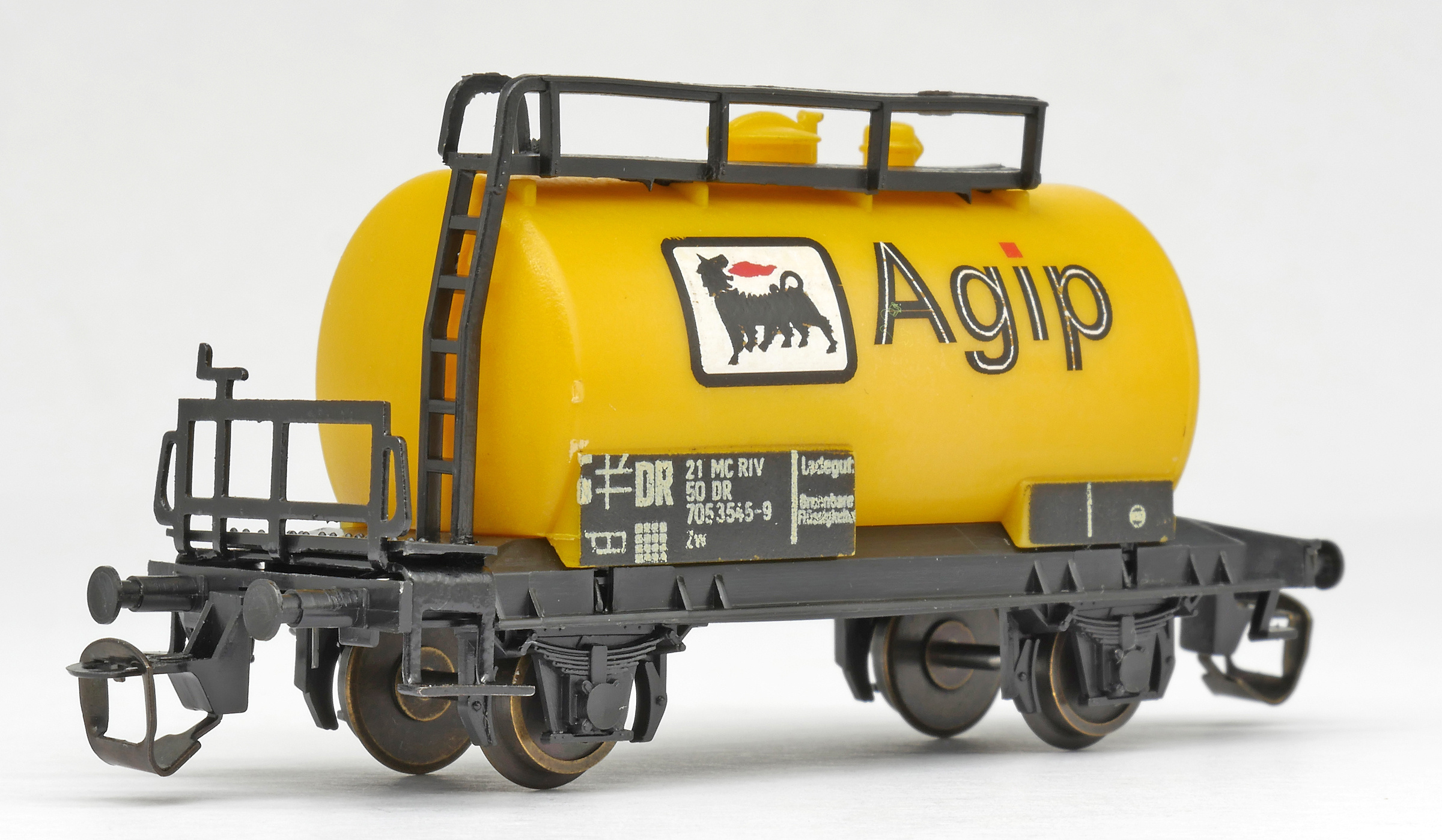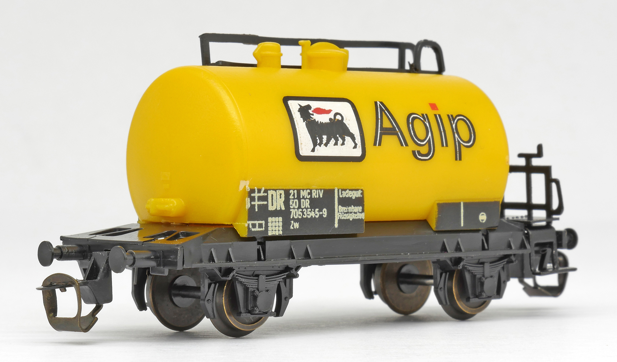 | kotlový vůz žlutý s logem „Agip“ |