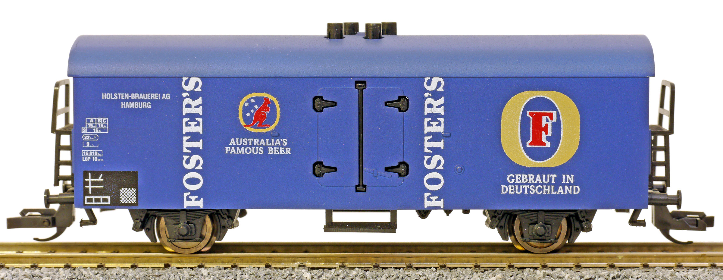 | nákladní chladící vůz modrý s modrou střechou „FOSTER'S“ |