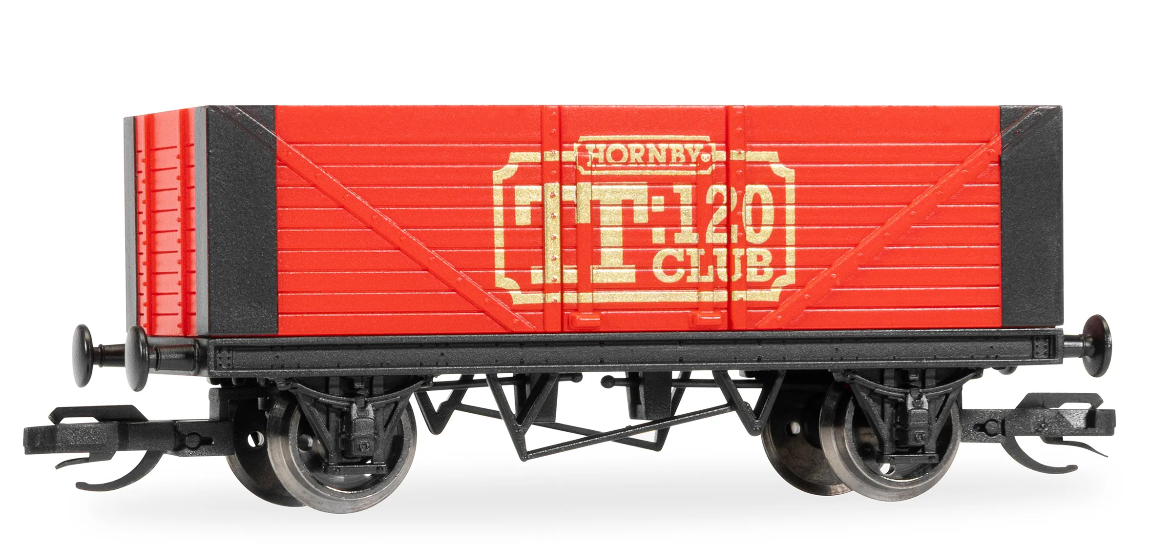 | otevřený nákladní vůz červený s potiskem „Club Wagon 2026“ |