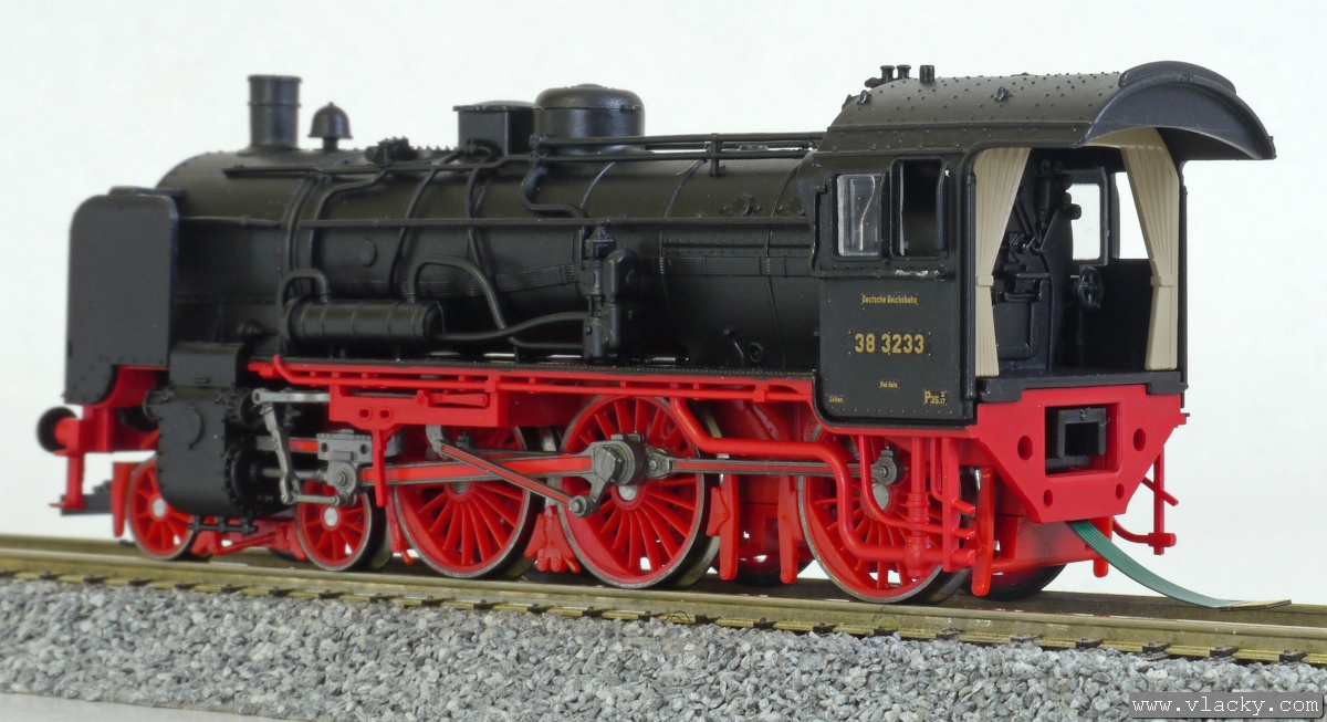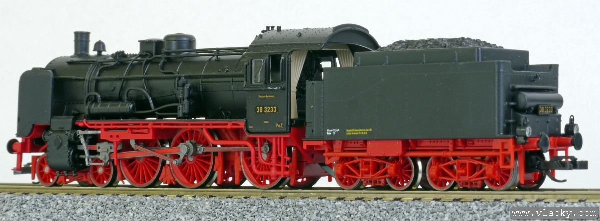 Kód   02025  [Lokomotivy] → [Parní] → [BR 38] → 02025: černá s červeným pojezdem a kouřovými plechy