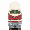 | dieselová lokomotiva červená-slonová kost, šedý rám a pojezd |